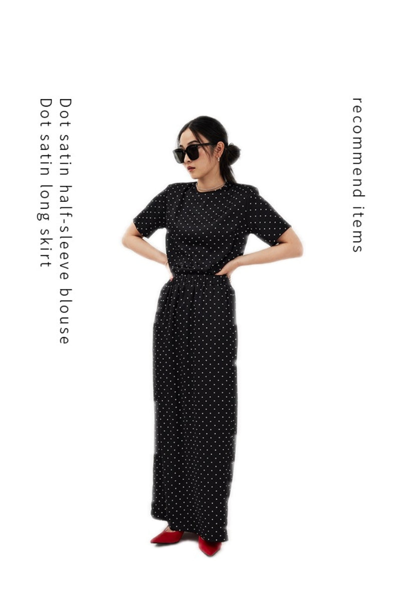 Dot satin half-sleeve blouse