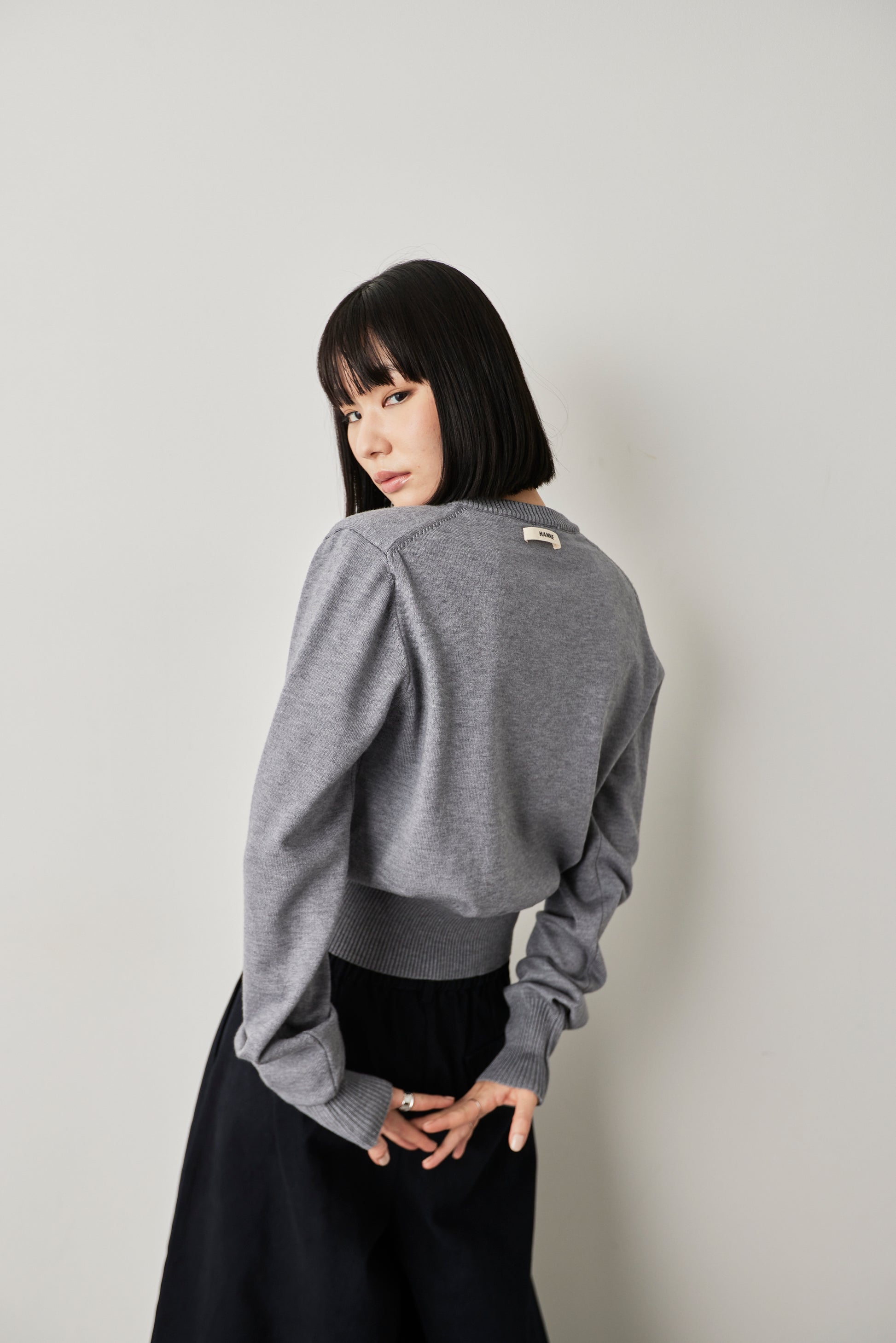 バックネックにはHANNEタグを配し、さりげないアクセントに。