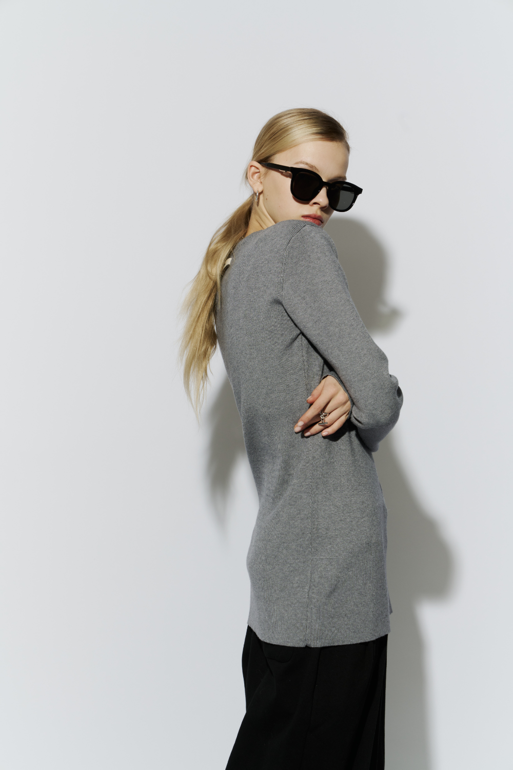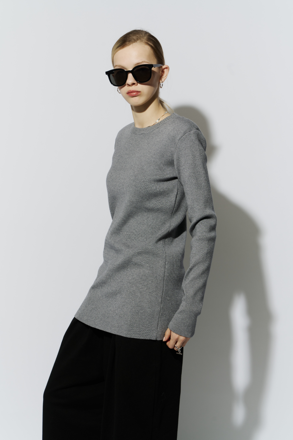 程よくフィット感のある編地で、ボディラインを拾いすぎず、上品さと着心地の良さを両立しています。