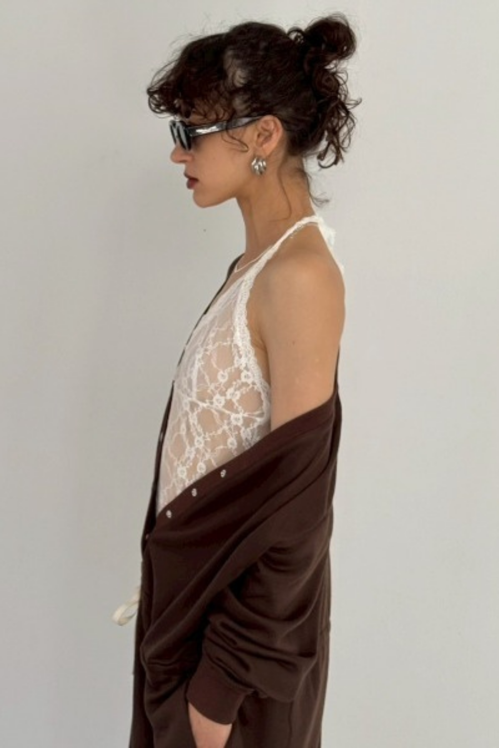 薄手のスウェット素材を使用し、カジュアルな雰囲気を持ちながらも、フロントのボタンやVネックラインなどカーディガンのようなディテールを取り入れたジャンプスーツ。ウエストのドローコードでシルエット調整も可能です。