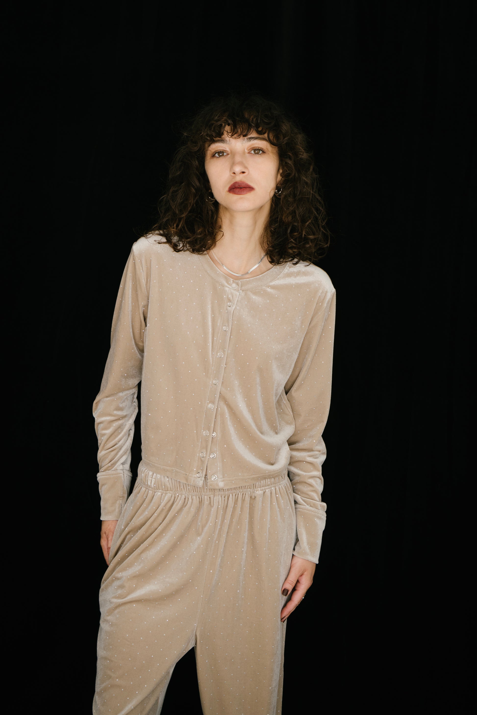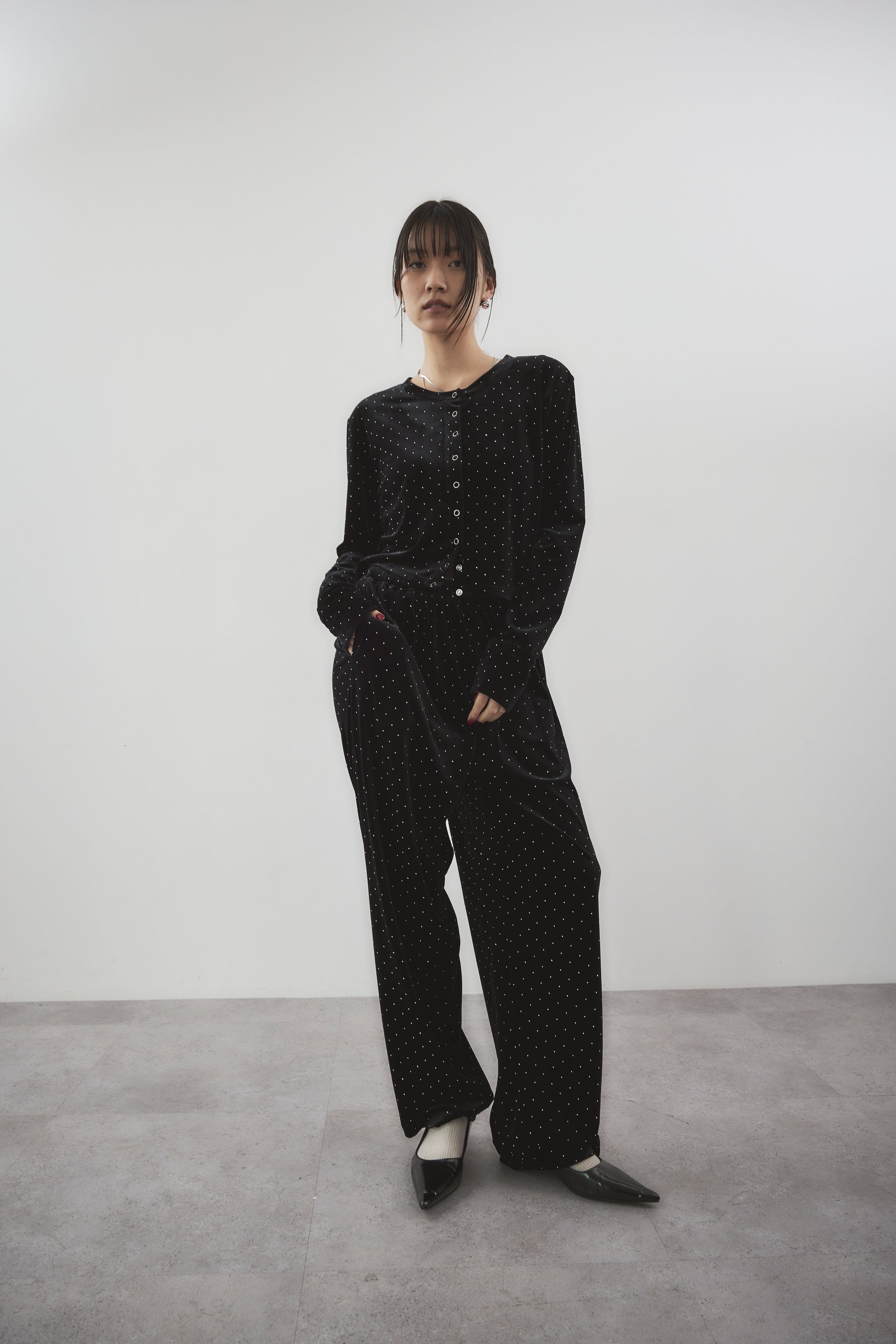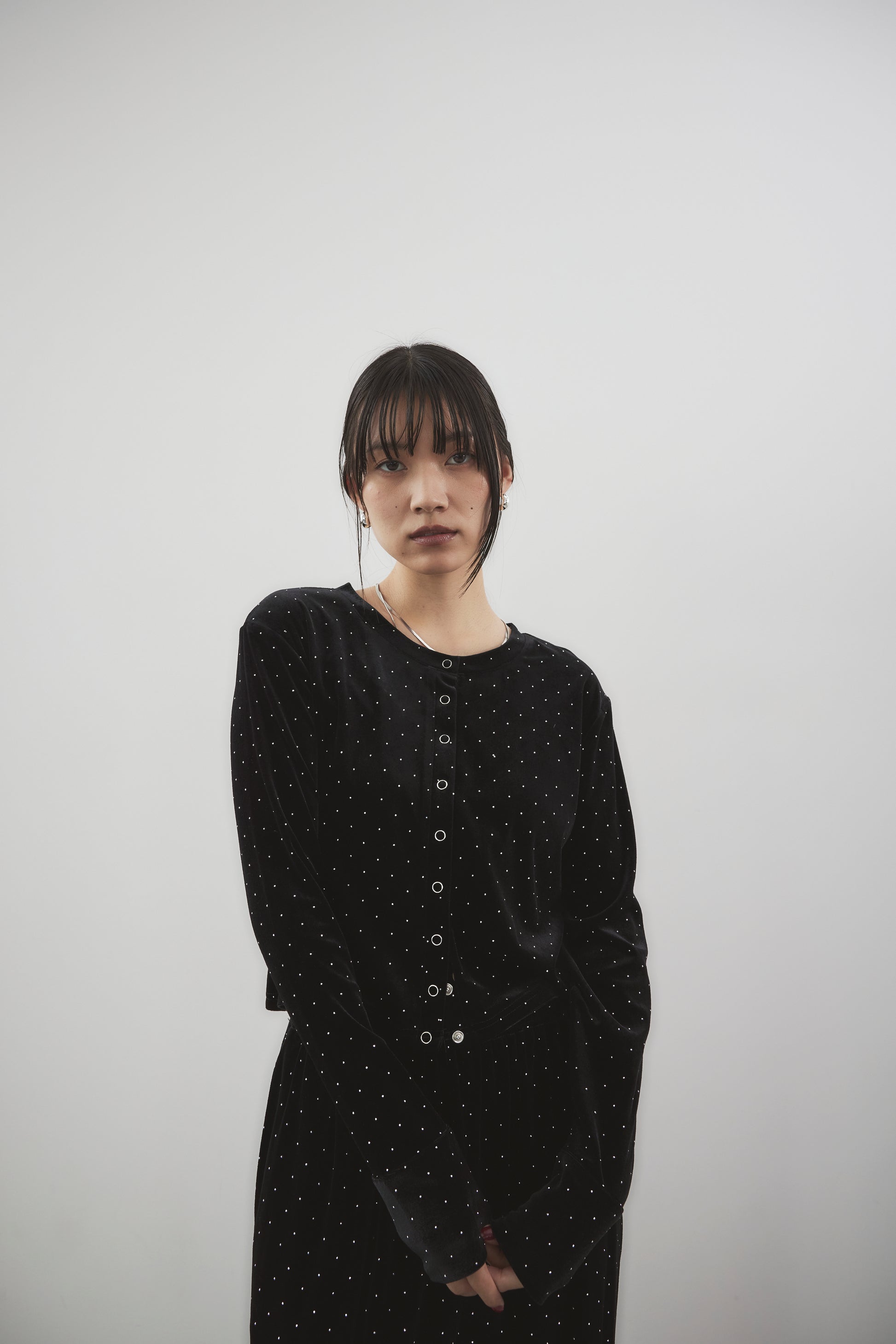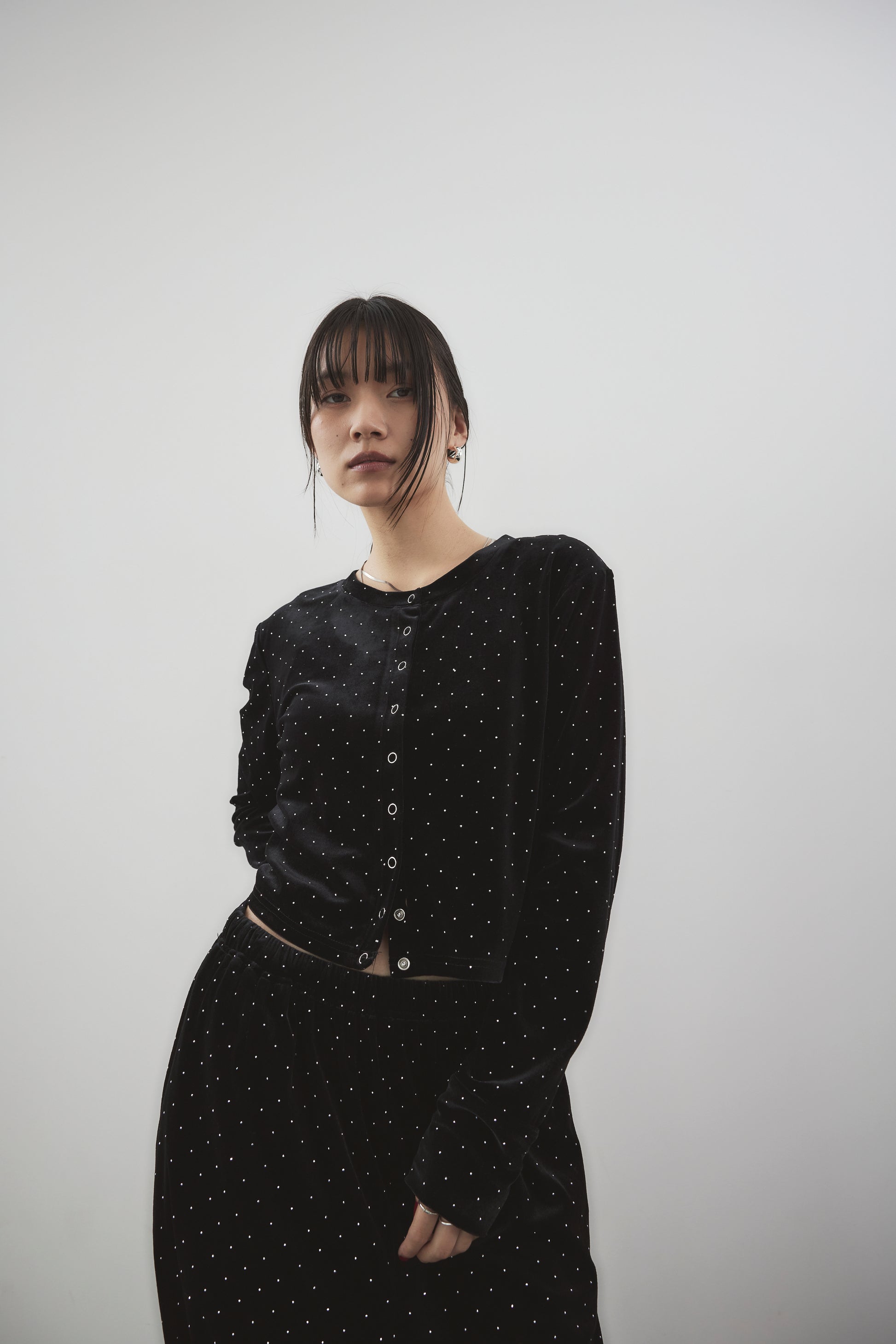 昨年ご好評いただいたシャイニードットベロアカーディガンに、今季新色のBEGが登場。キラキラと輝くシャイニードットが華やかさを添え、光沢感のあるベロア素材が上品な雰囲気を演出。秋冬のコーディネートをクラスアップしてくれる一枚です。フロントのリングドットボタンが程よいカジュアルさを加え、ショート丈のシルエットで幅広いボトムスと好相性。