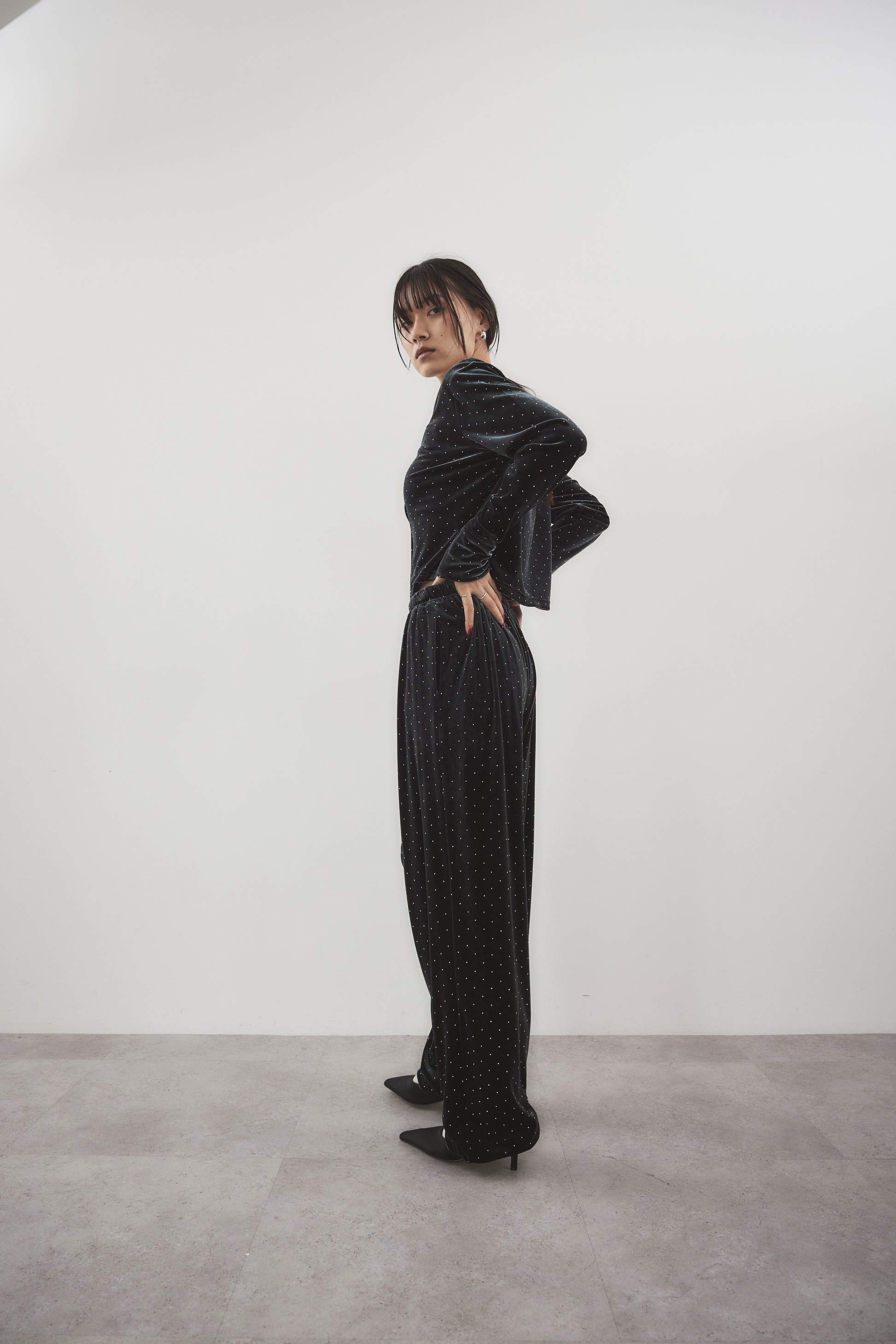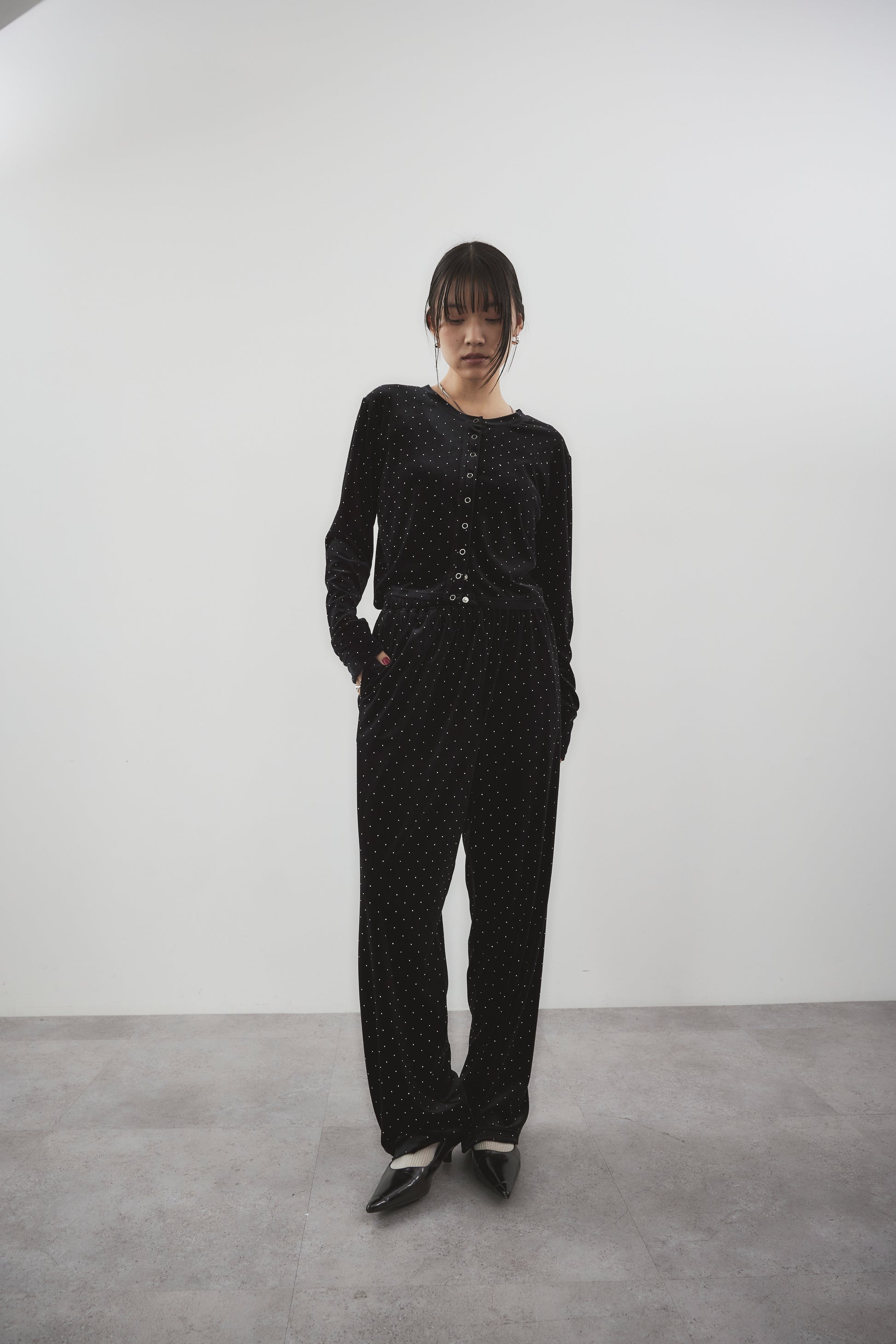 デニムやスラックスに合わせるだけで、シンプルながらも華やかなスタイリングに。ワンピースに羽織ればスタイルアップ効果も期待できます。同素材のベロアパンツとセットアップでの着こなしもおすすめ。アクセサリーをプラスすれば、デイリーから特別なシーンまで活躍します。