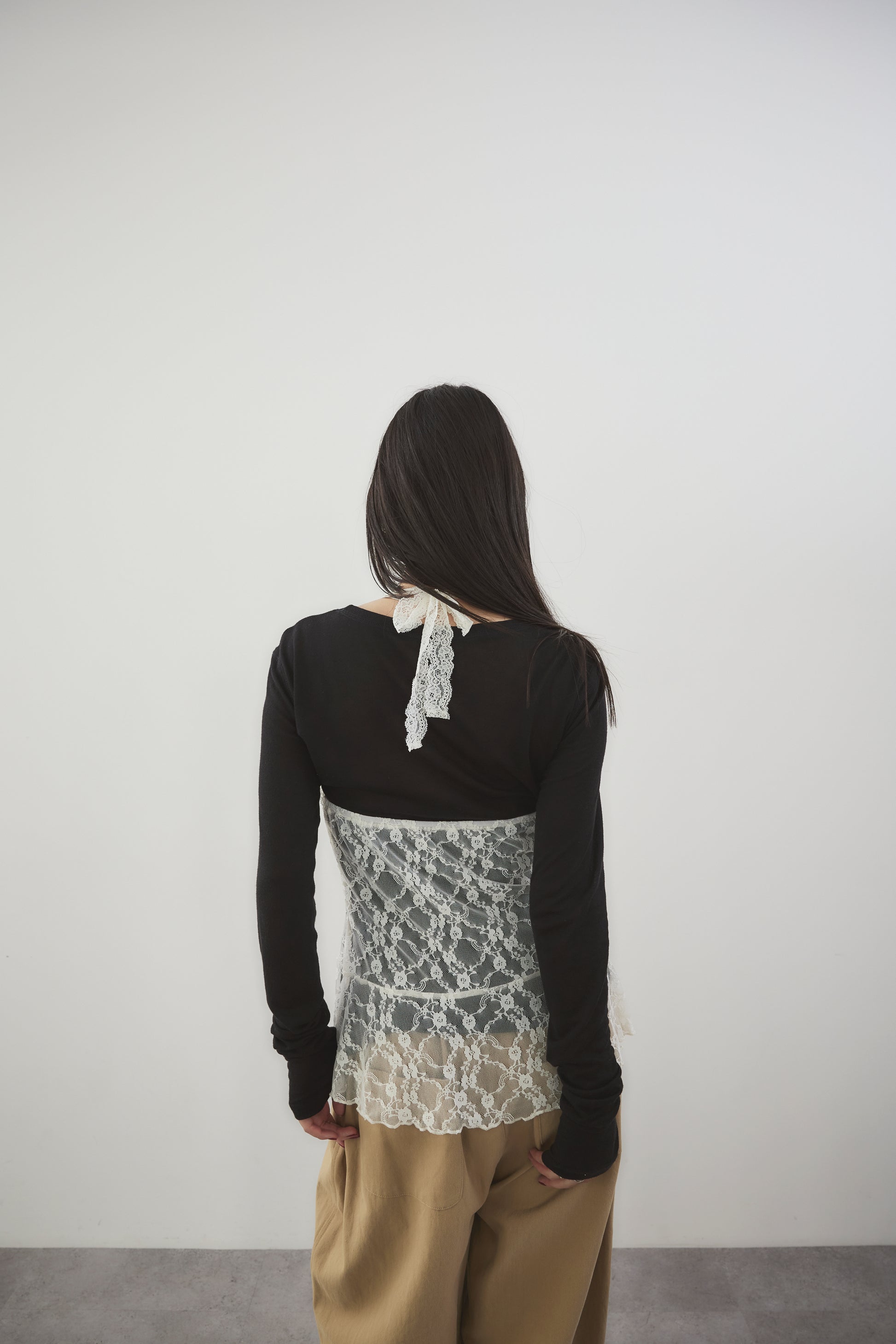 繊細で華奢なレースを贅沢に使用したホルターネックレーストップス。