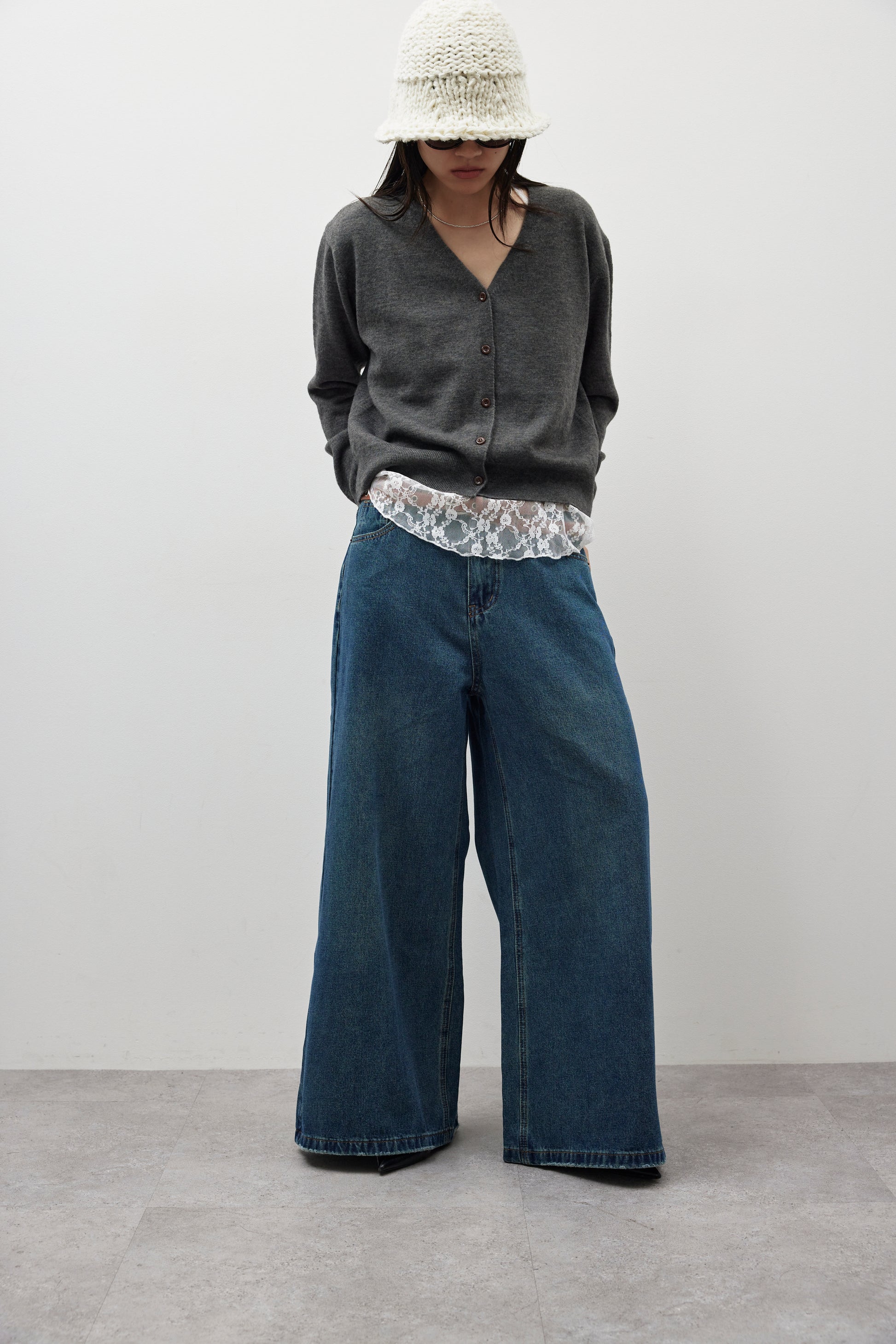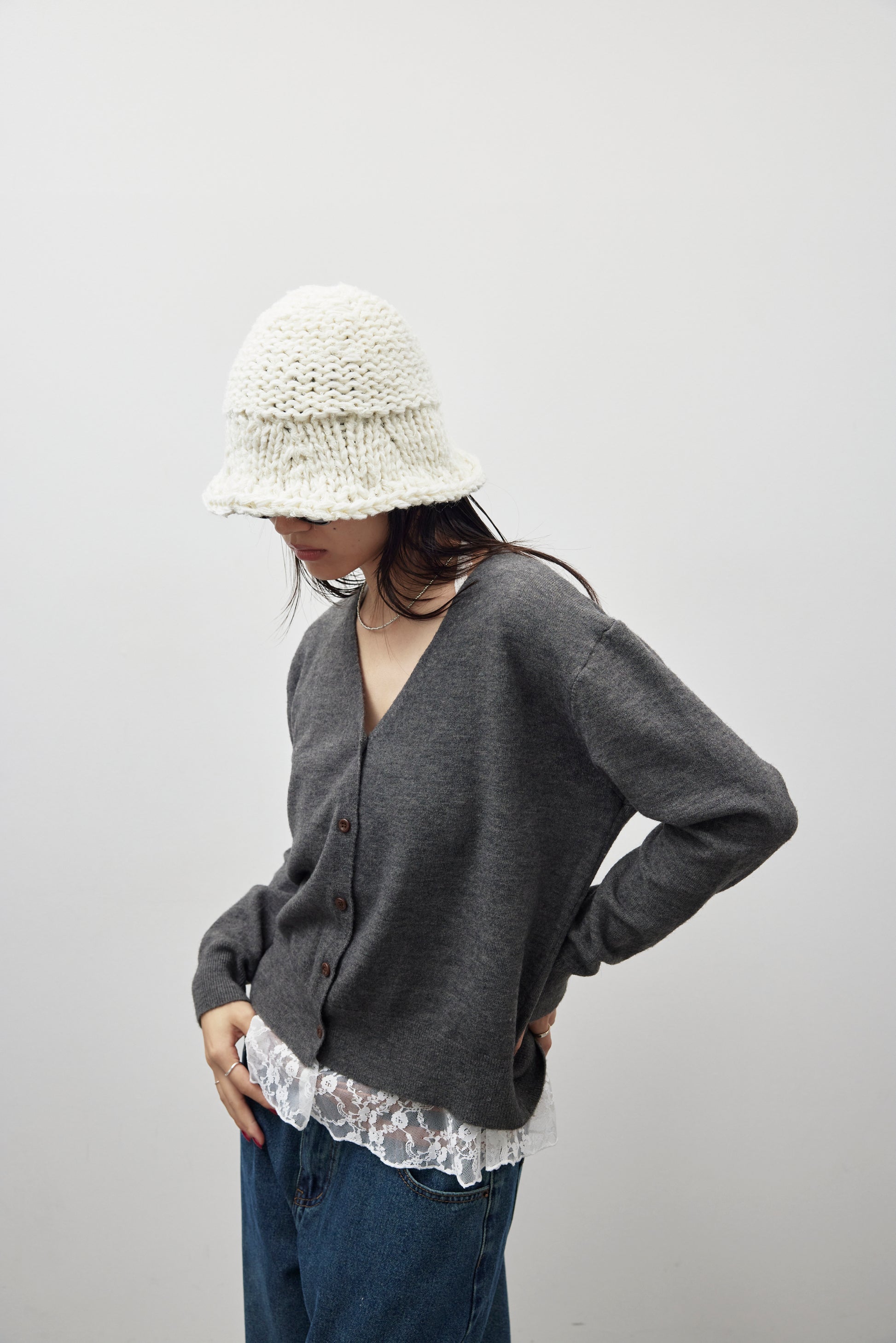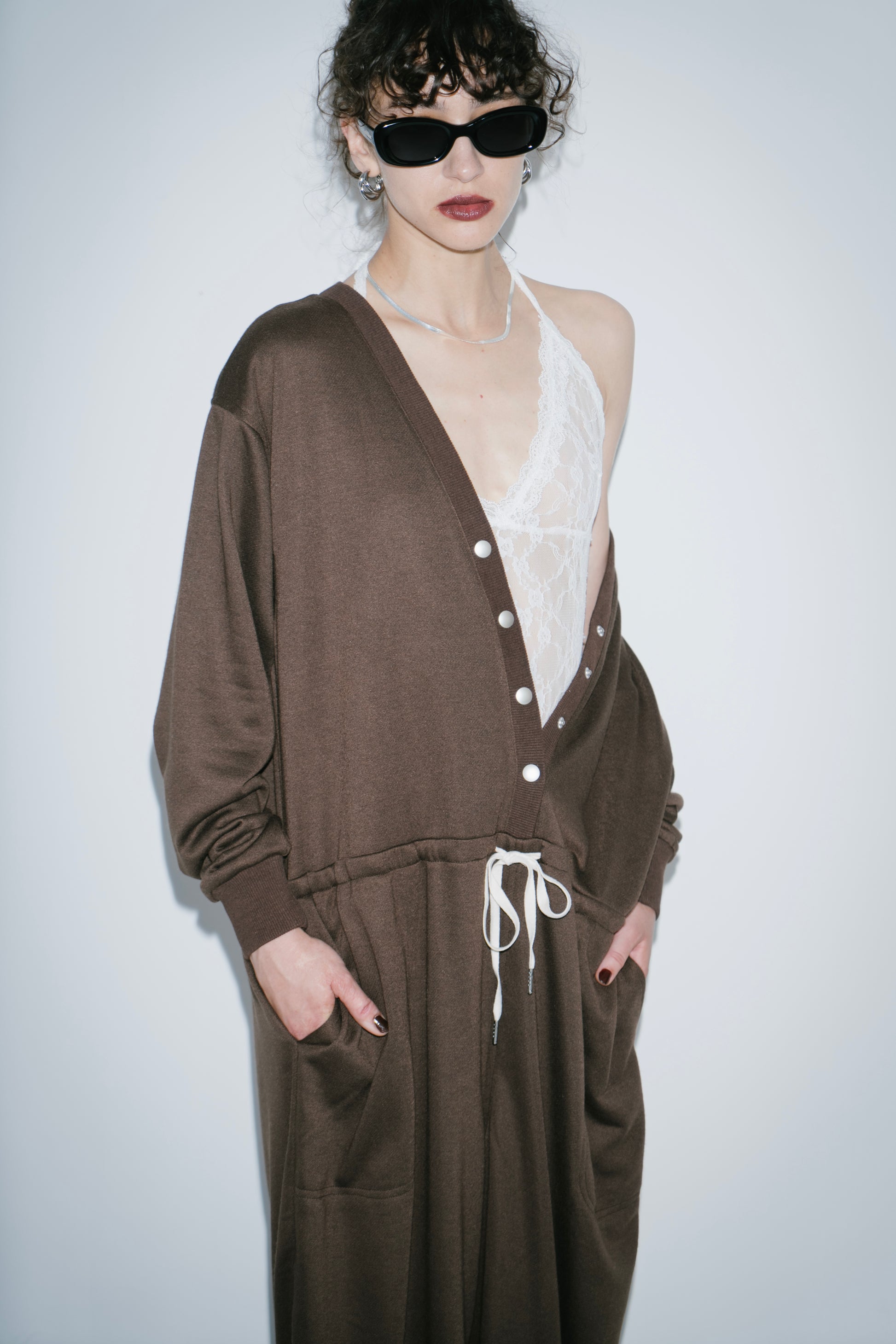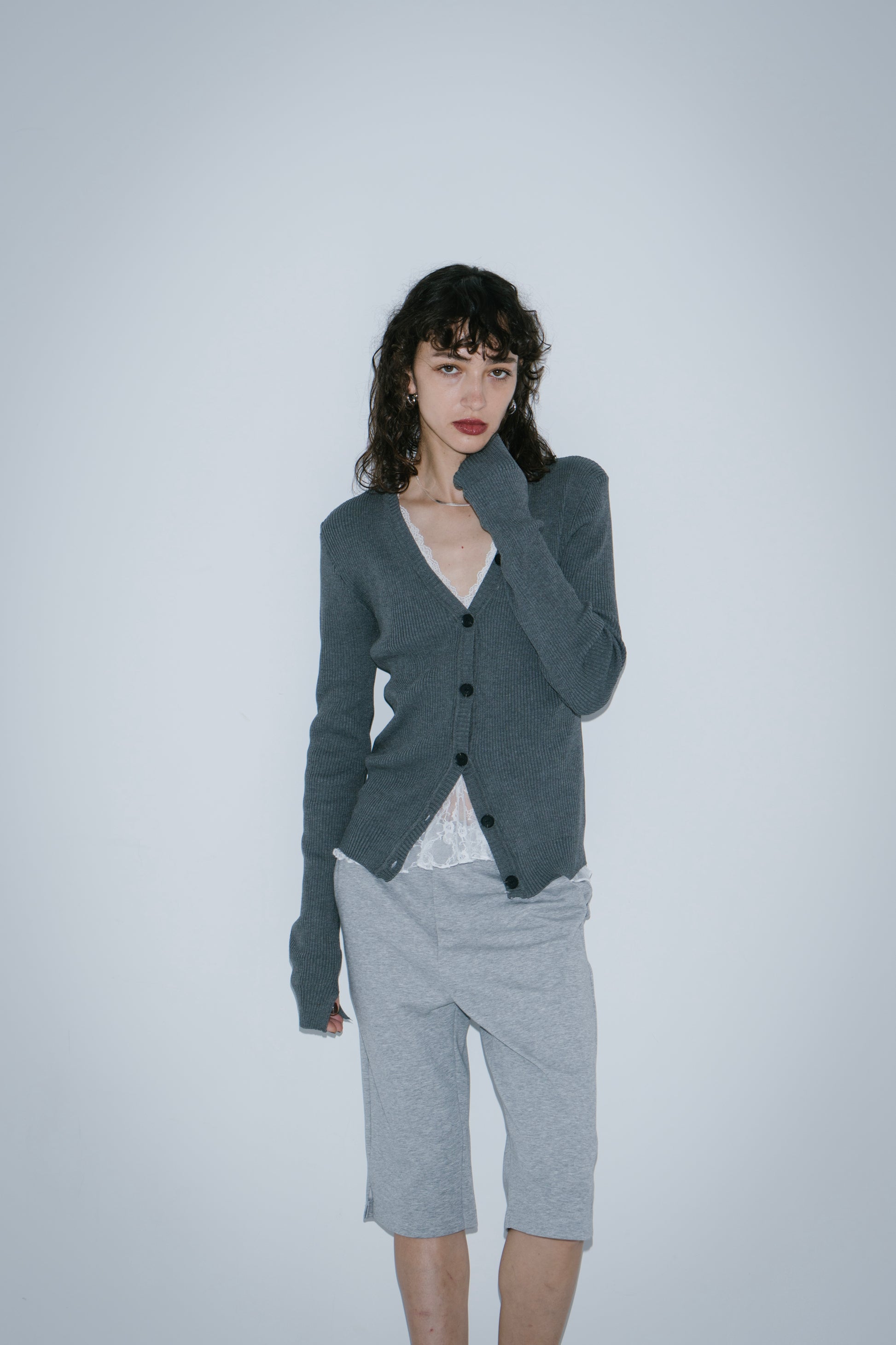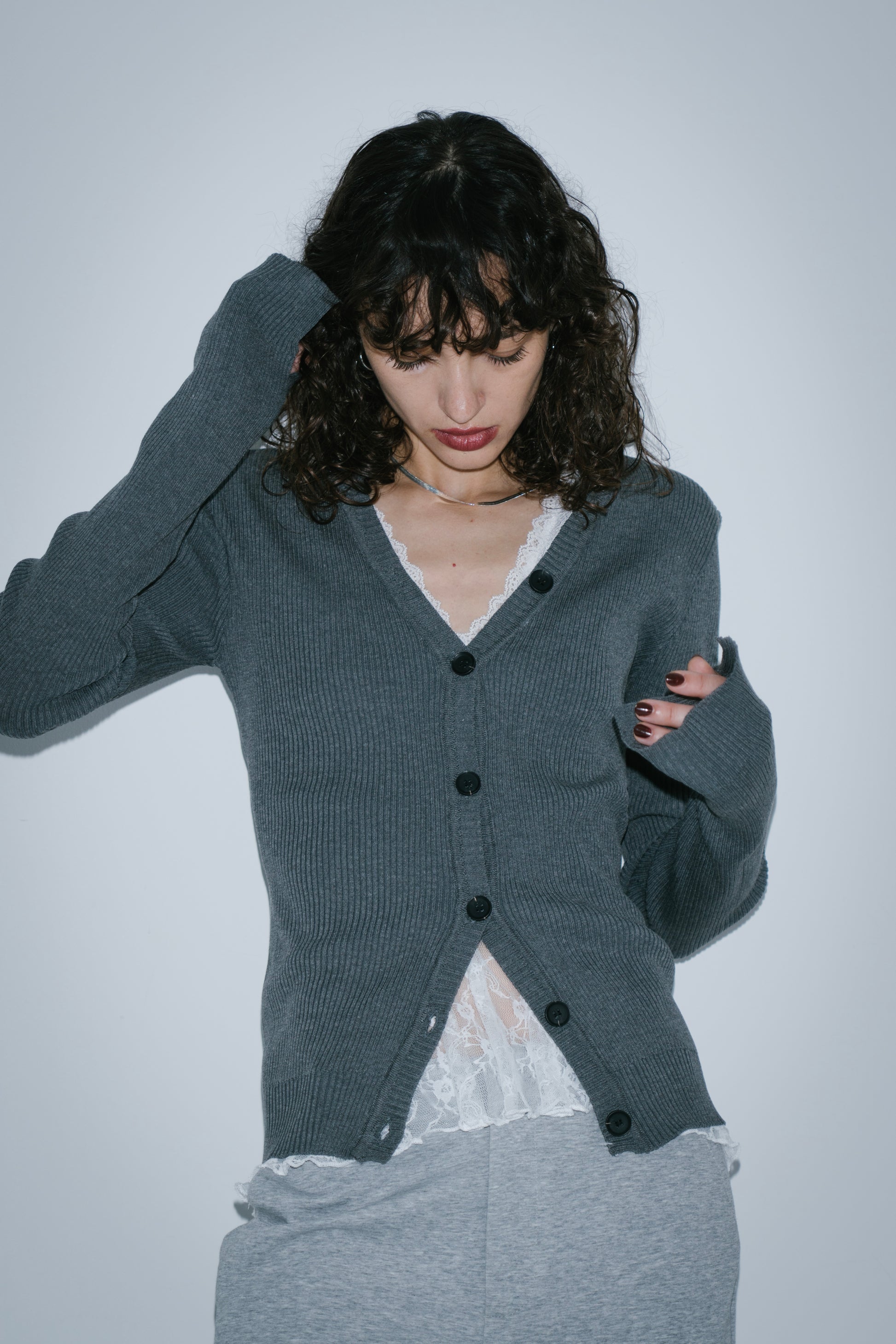 Vネックやオフショルダーのトップス、カーディガンとのレイヤードスタイルがおすすめ。
