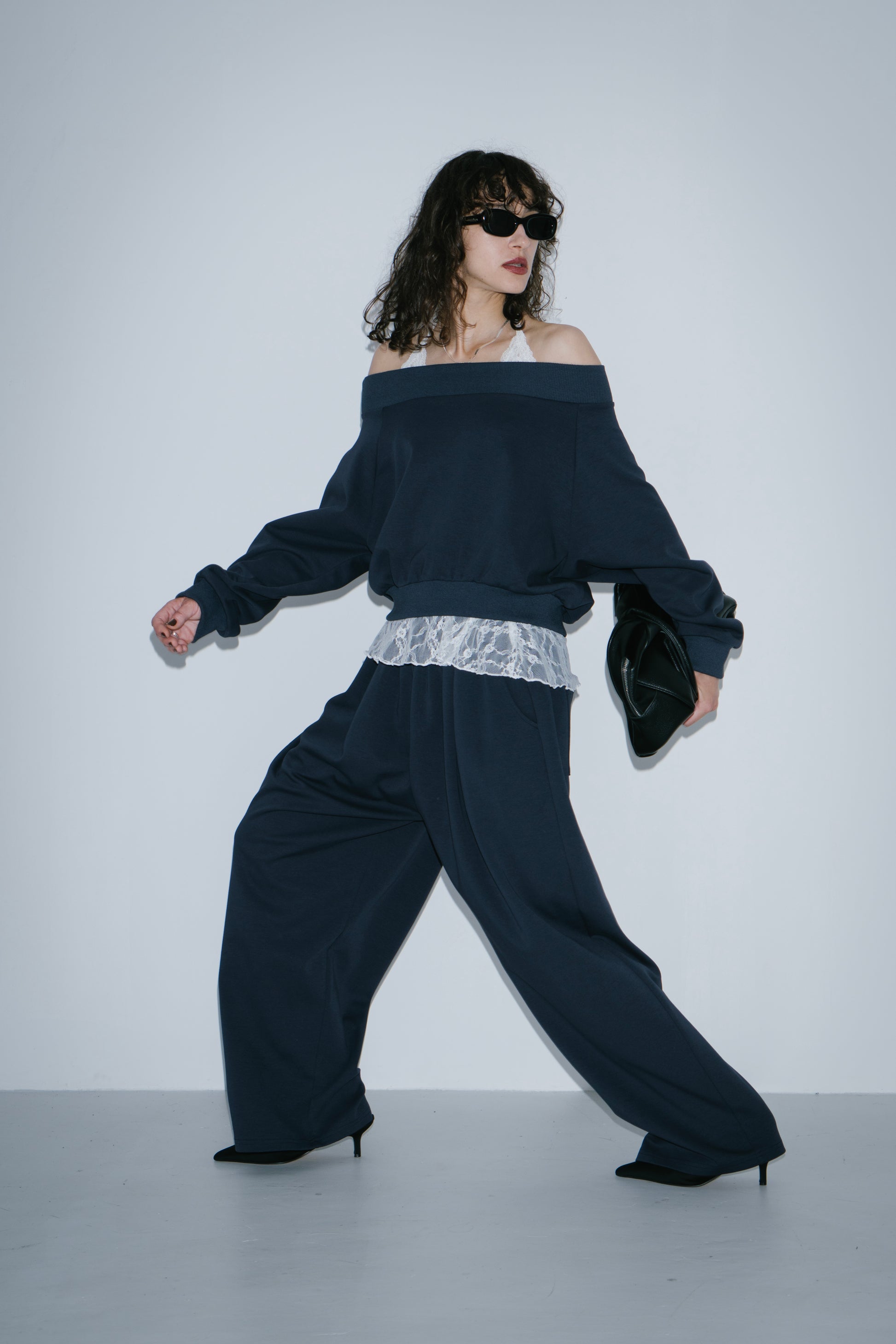 ジャケットやスウェットのインナーとして合わせれば、程よい抜け感と華やかさをプラスできます。
