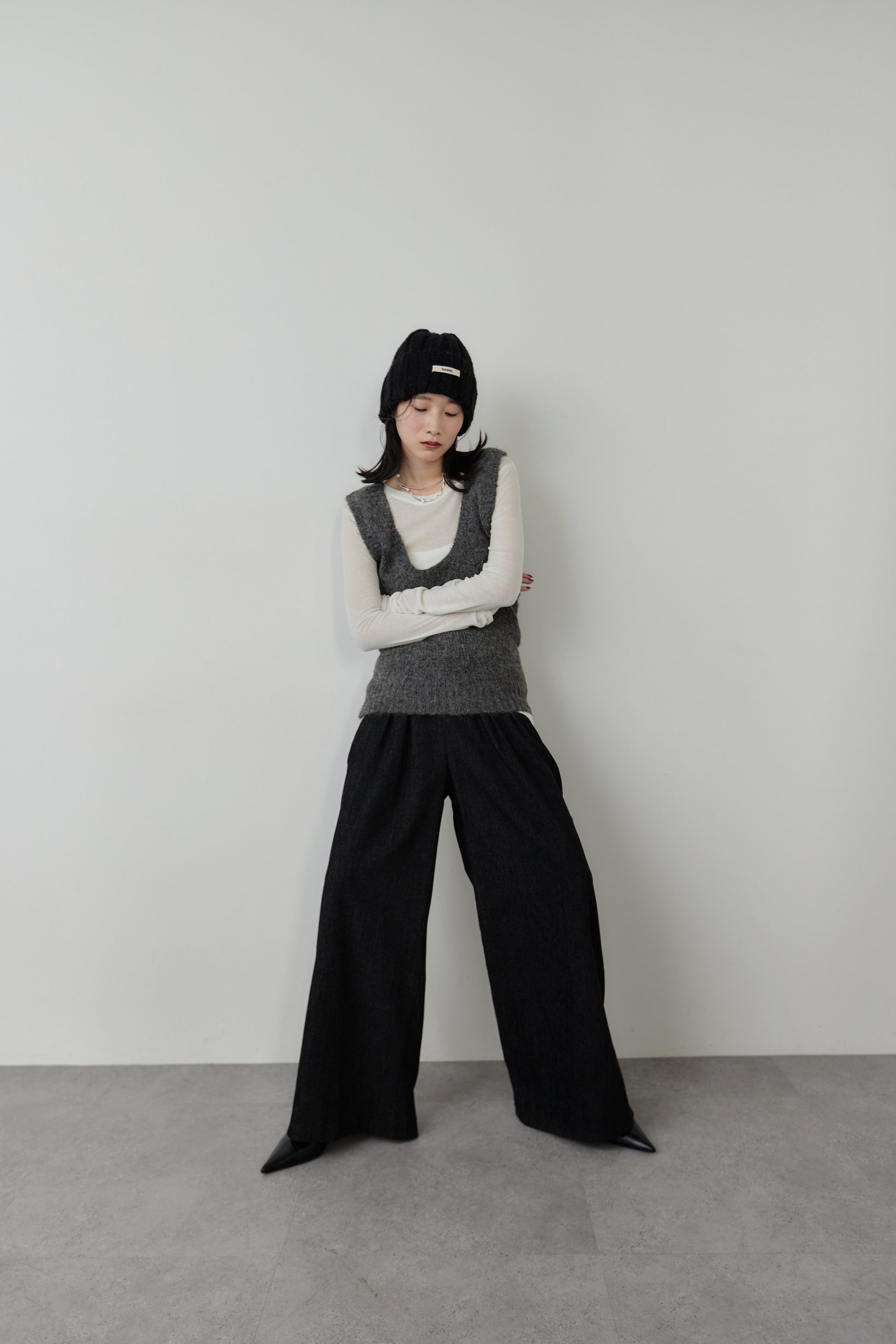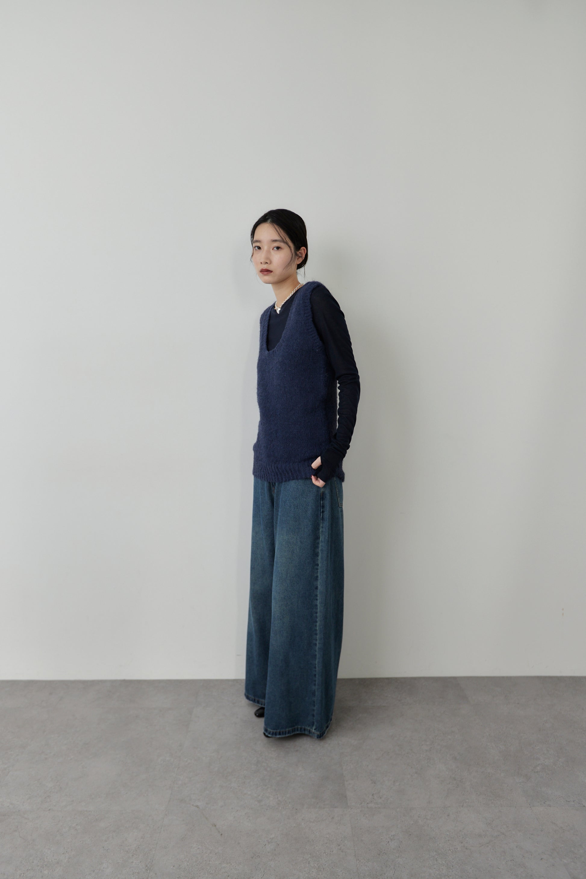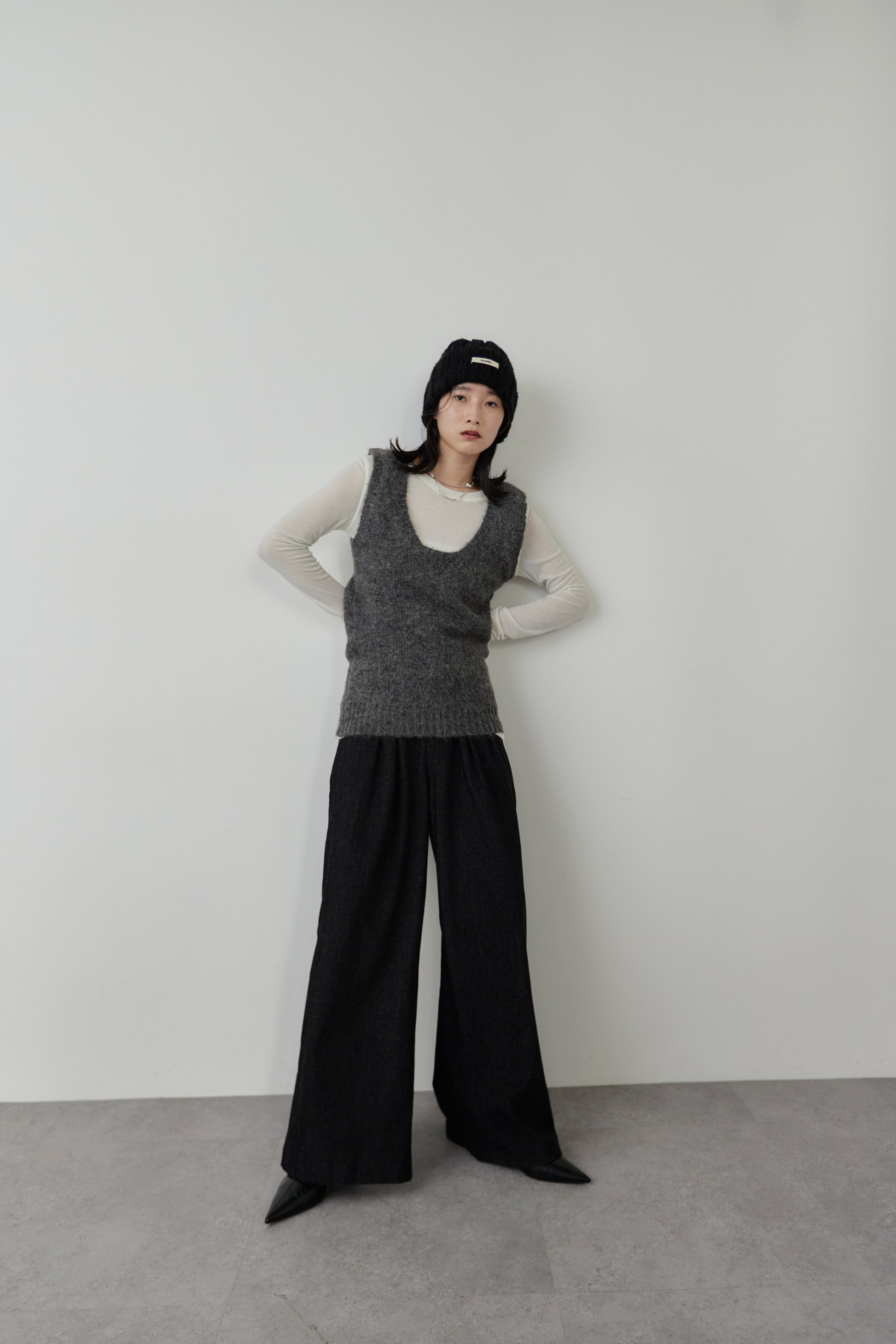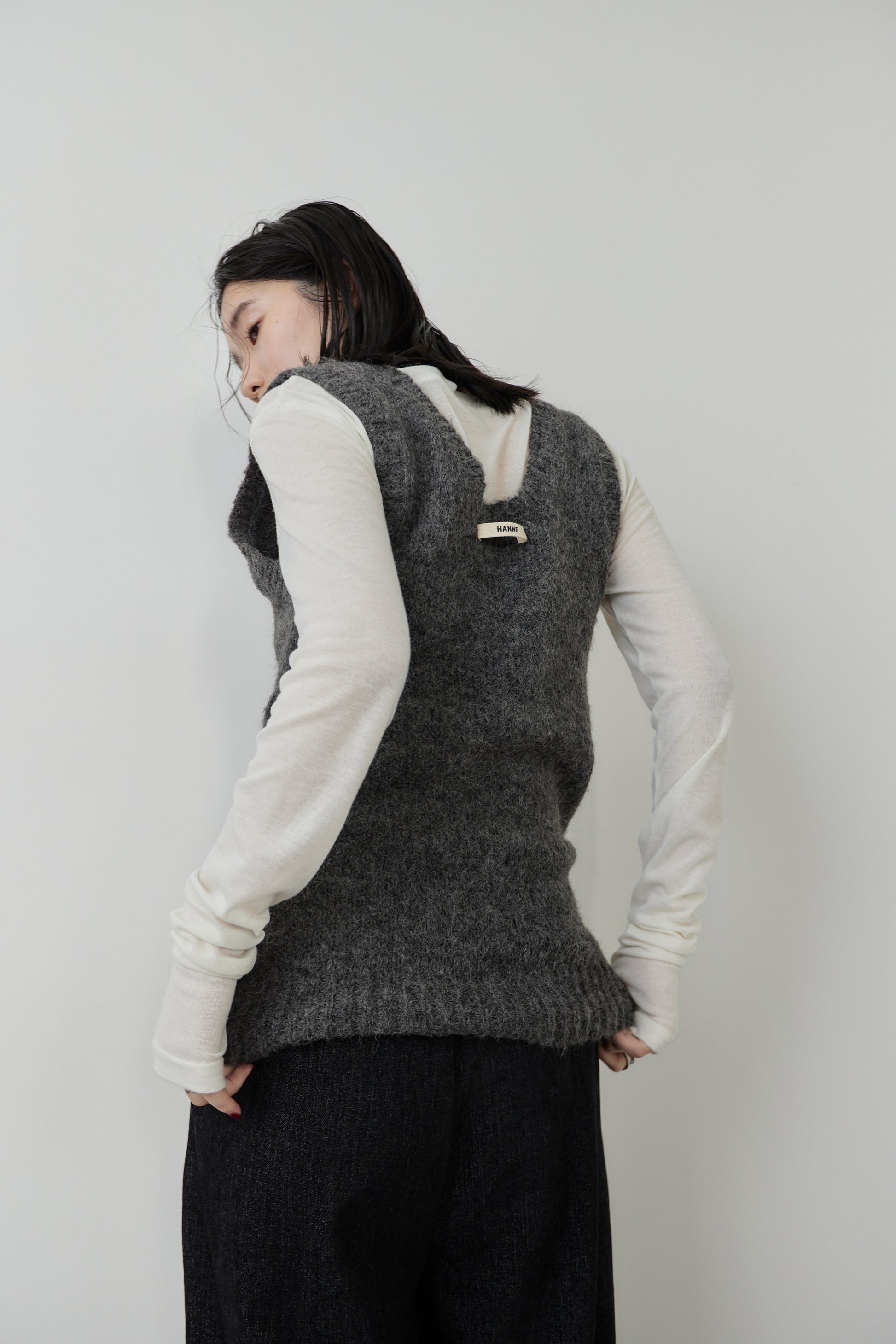 毛足のあるモヘアライク糸で編み立てた、季節感たっぷりのニットベスト。
