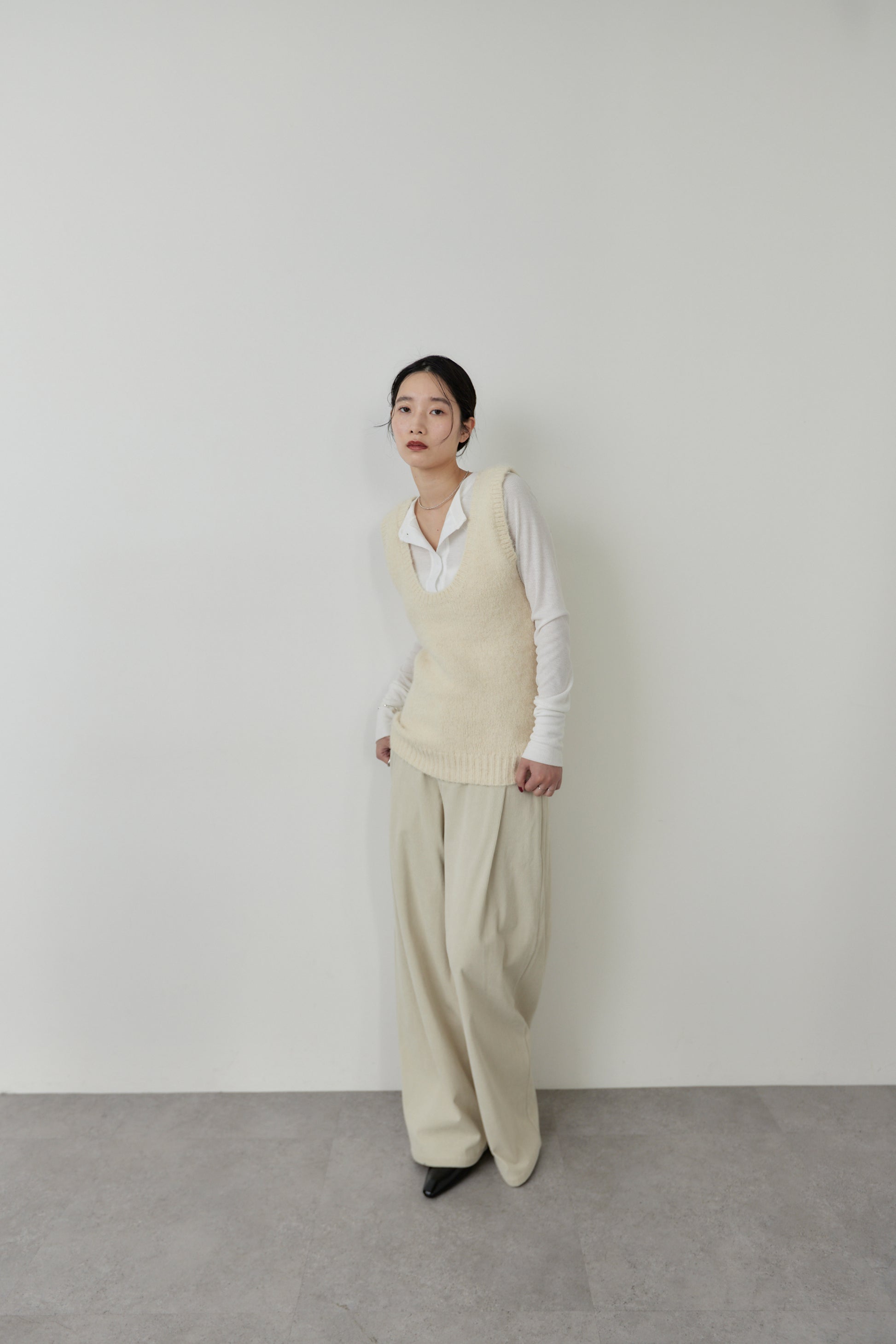 大きく開いた深Uネックが特徴で、レイヤードするだけで他にない存在感を演出。