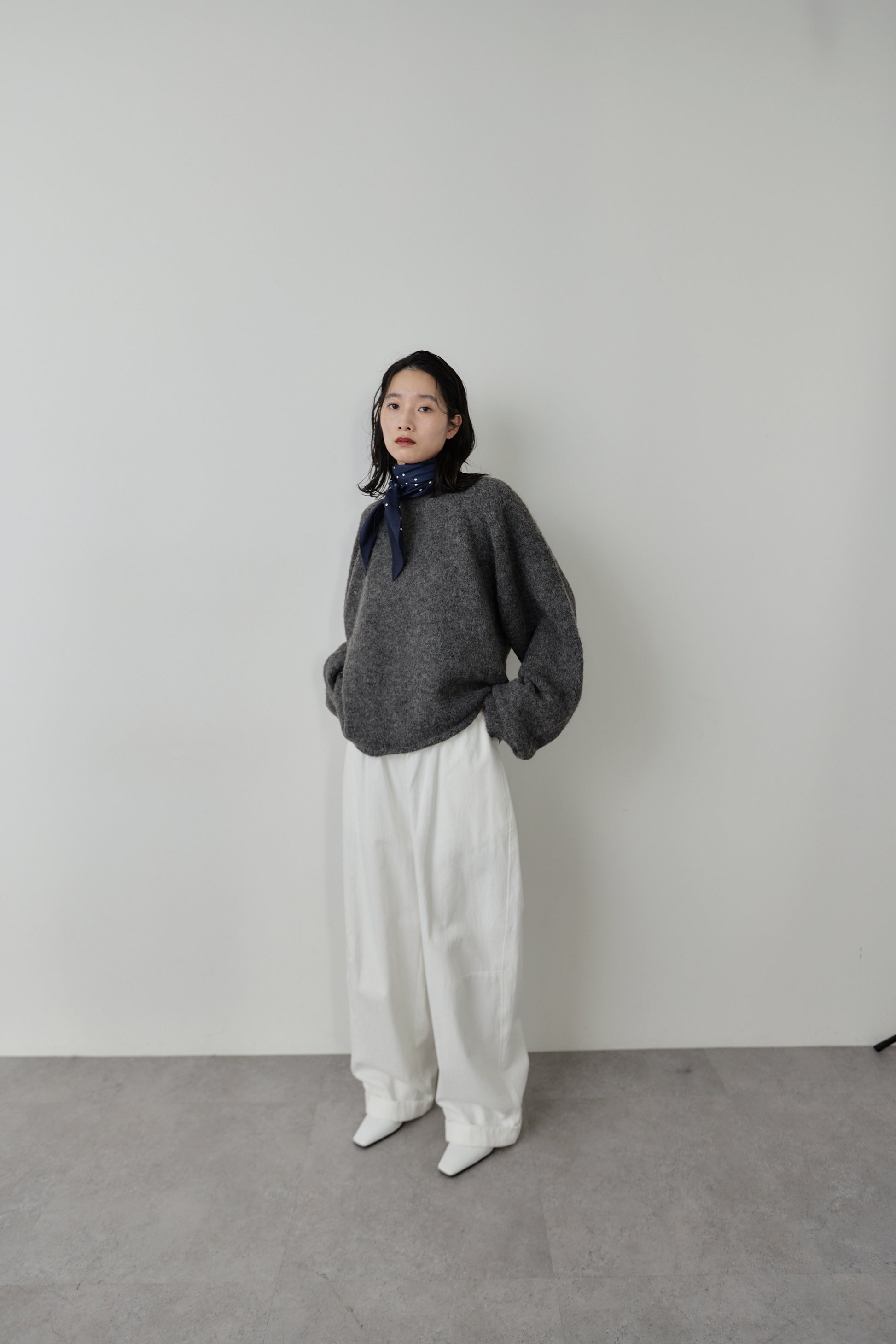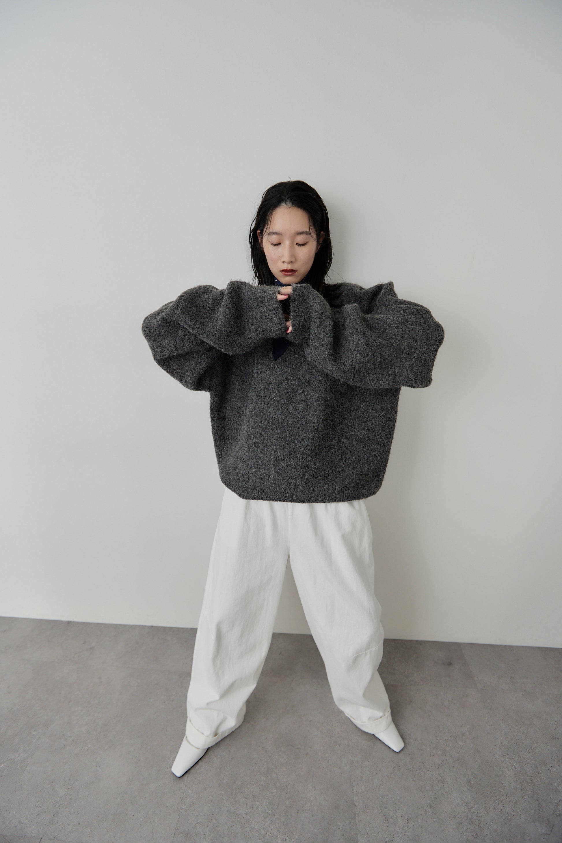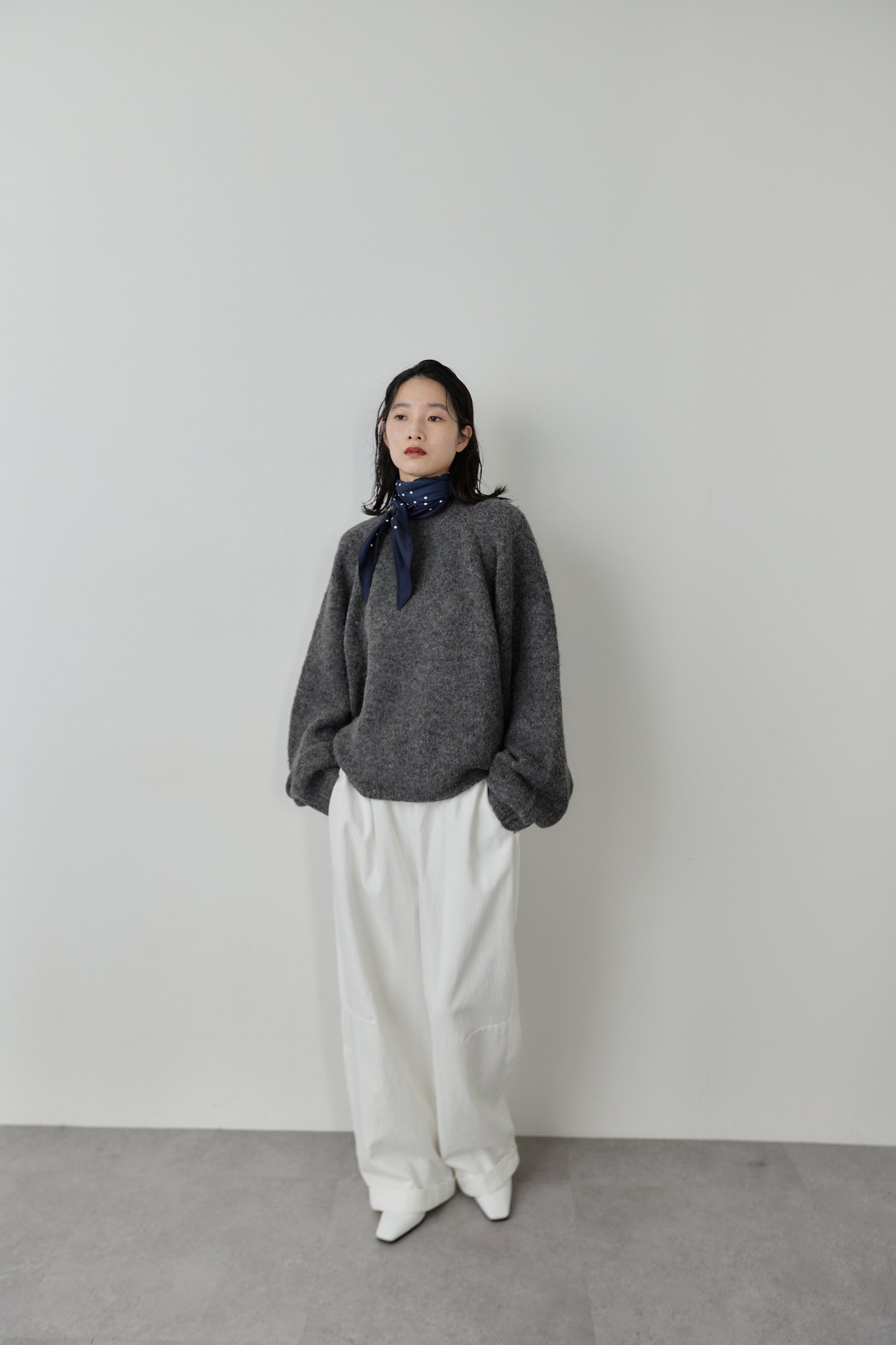 一枚でスタイリングが決まる主役ニットで、ワイドパンツやタックパンツと合わせるだけでモードなバランスが完成。