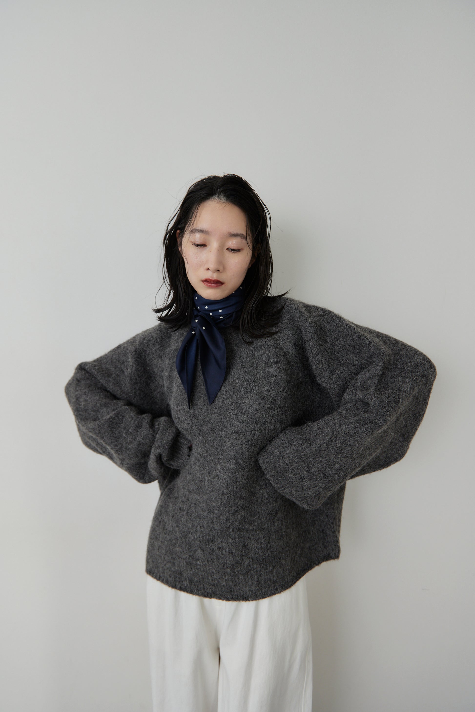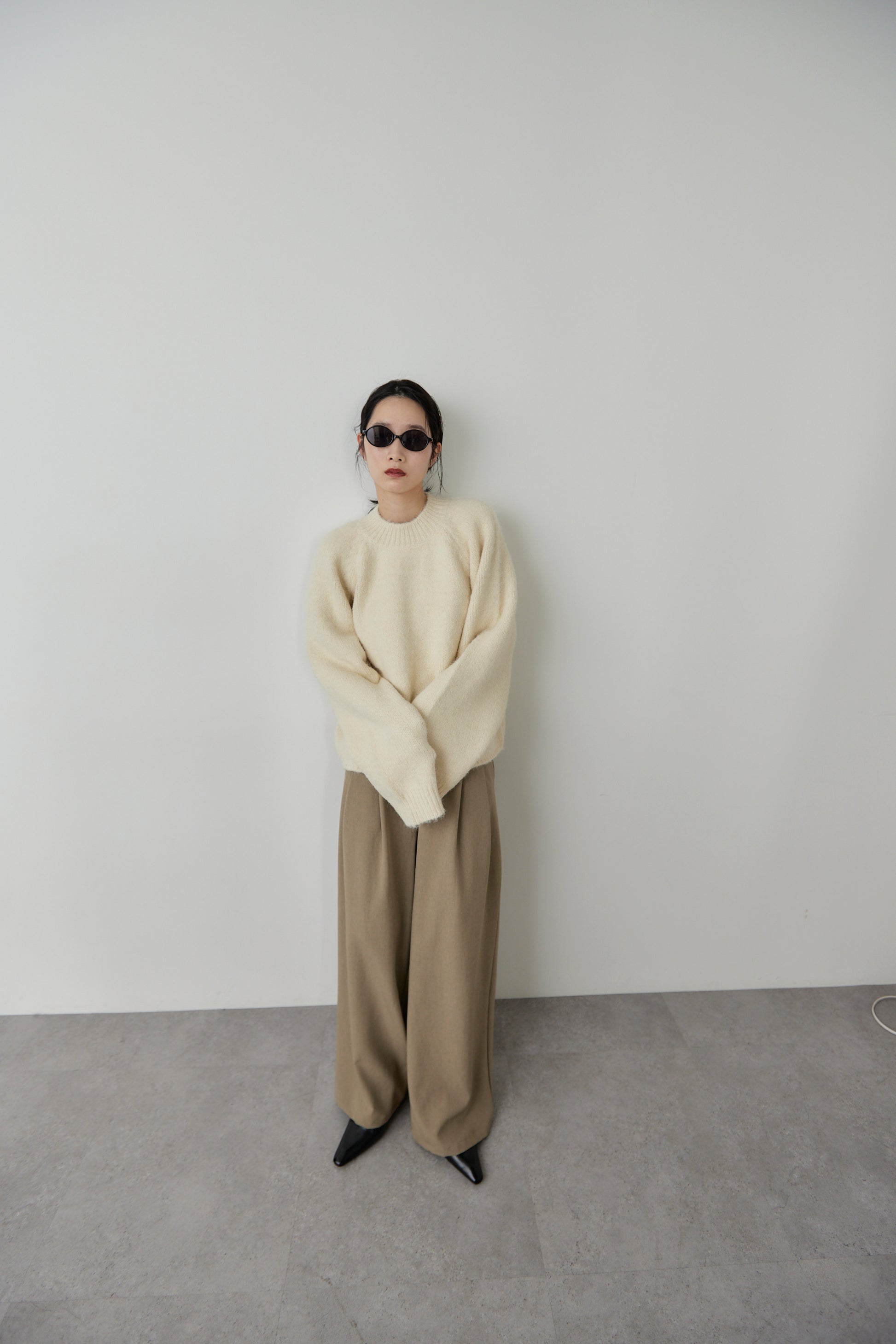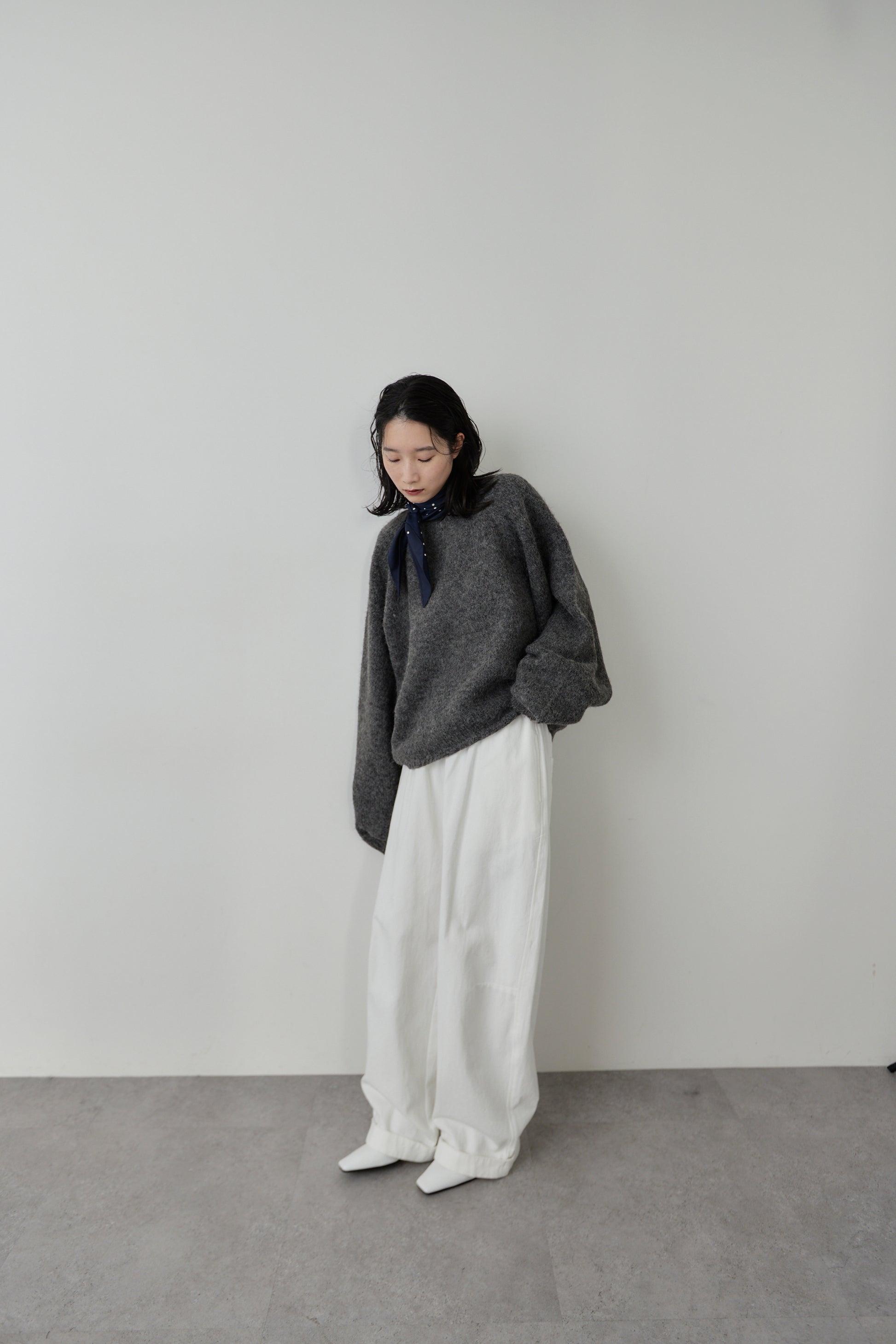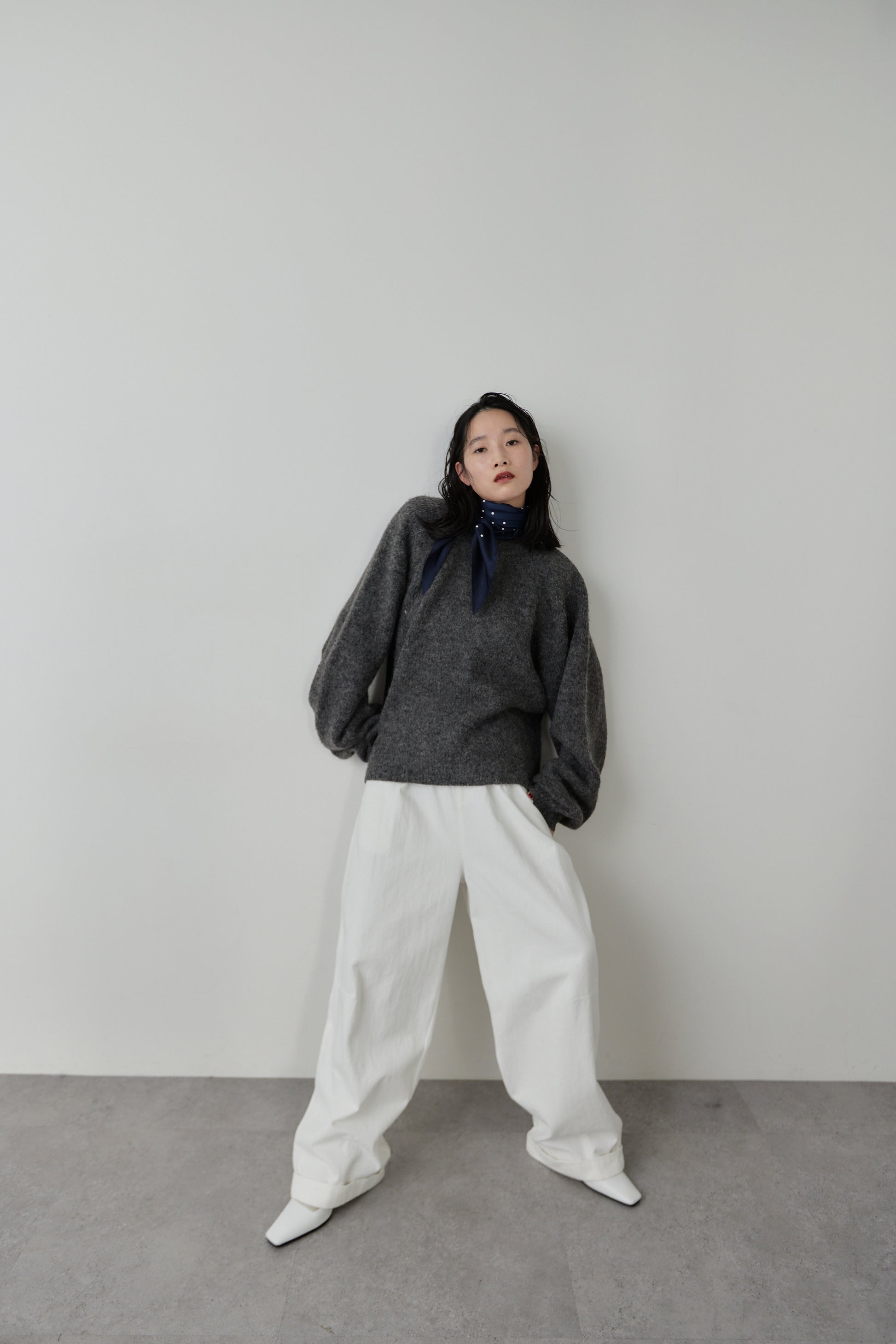 一枚でスタイリングが決まる主役ニットで、ワイドパンツやタックパンツと合わせるだけでモードなバランスが完成。