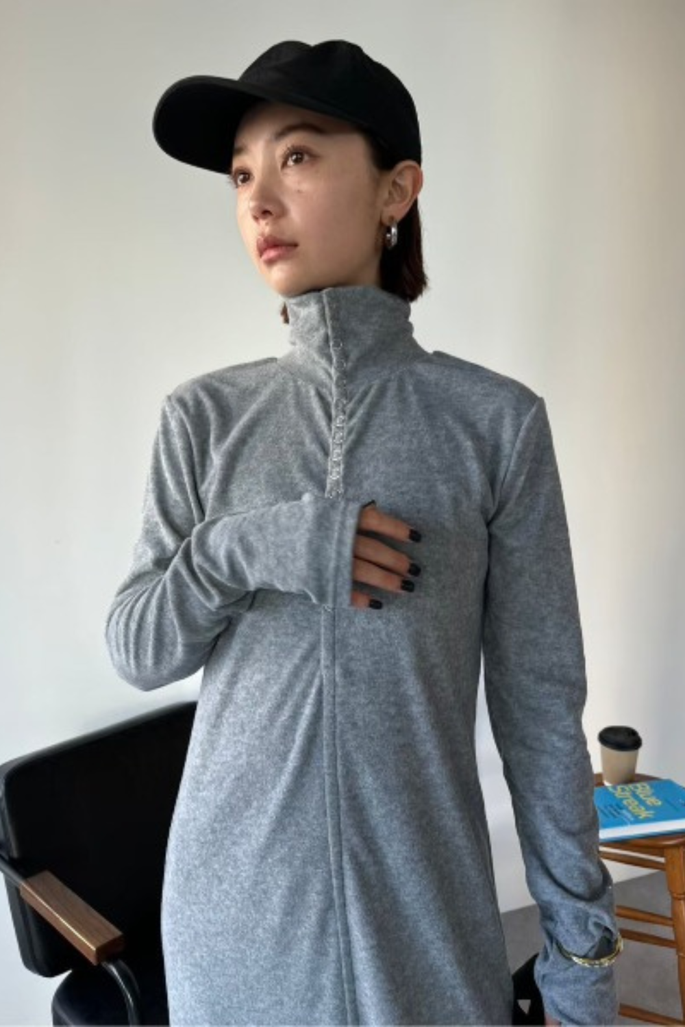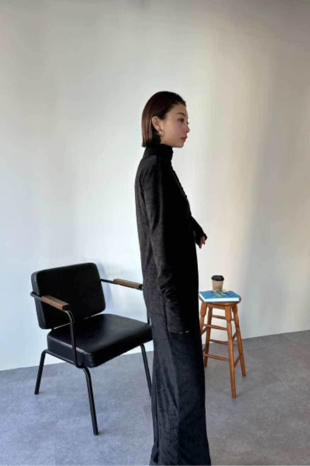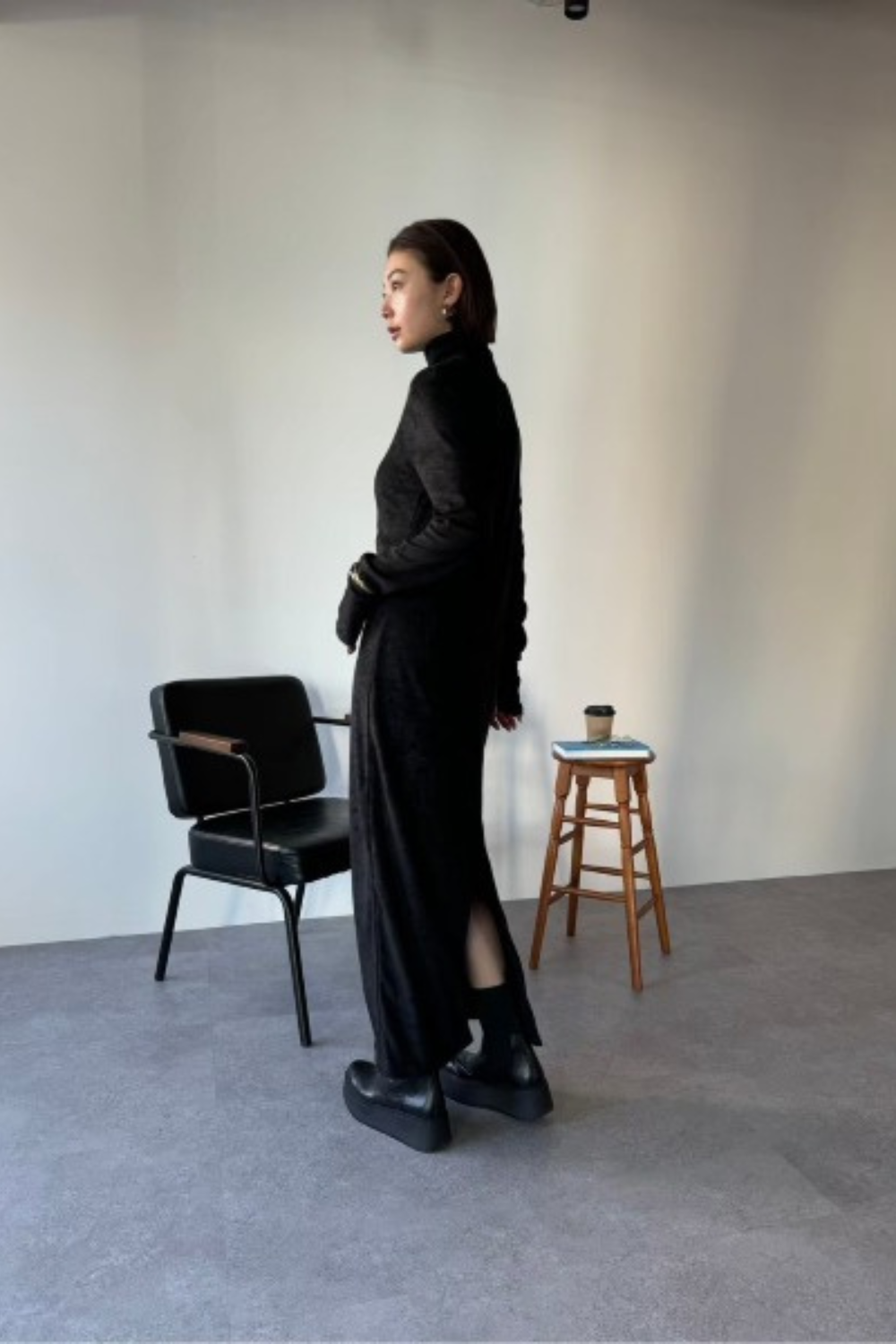 ・ハイネックデザインのロングワンピース