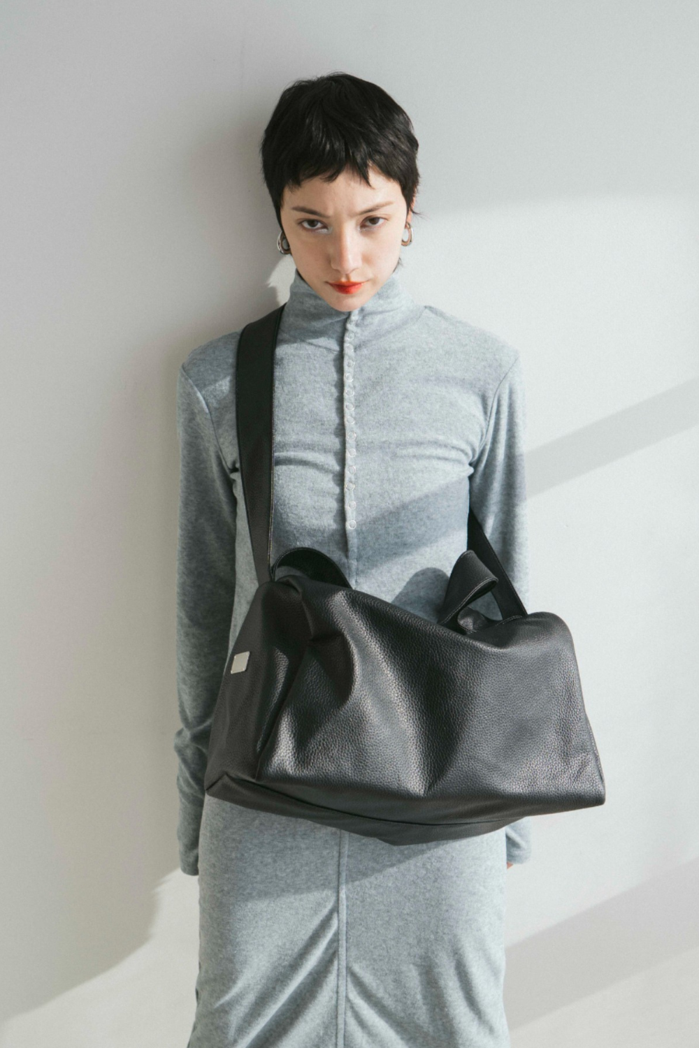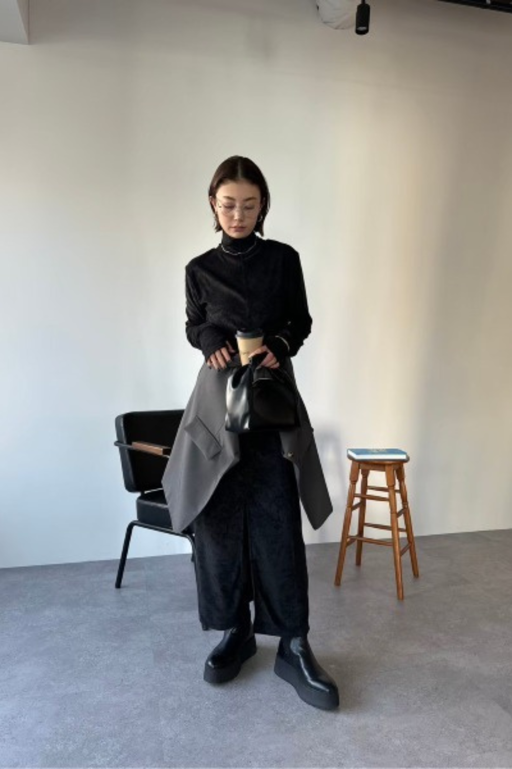 ・ボタンを閉めてハイネックスタイルでモードなスタイリングでも、ボタンを開けて抜け感のあるスタイリングもオススメです。