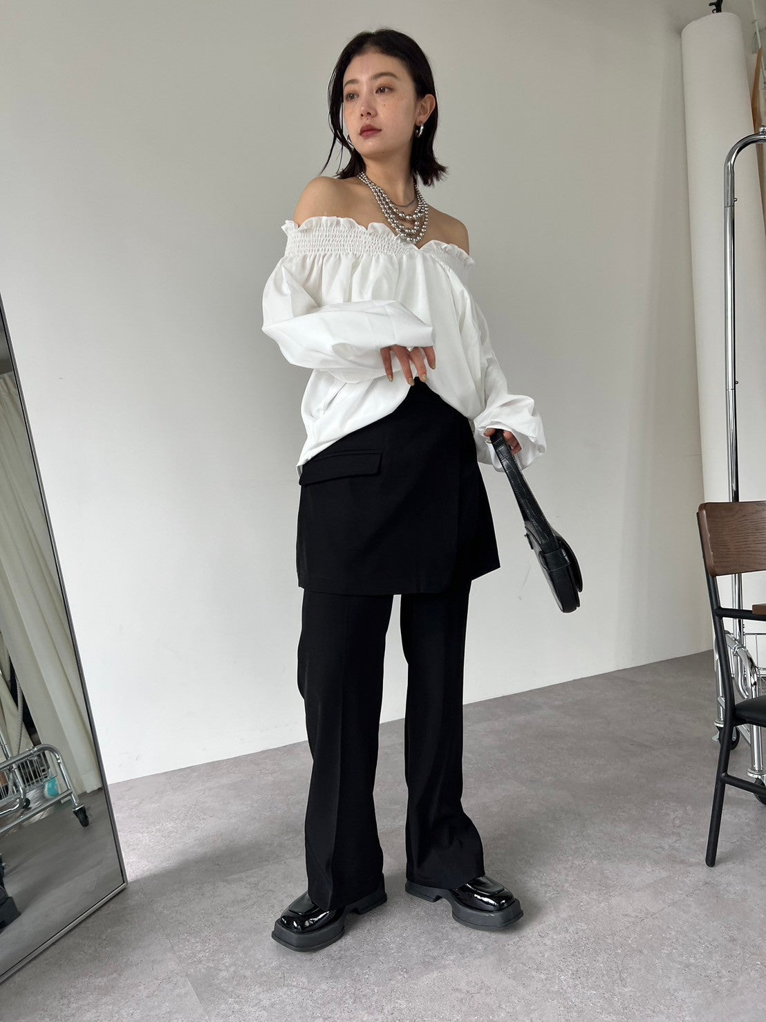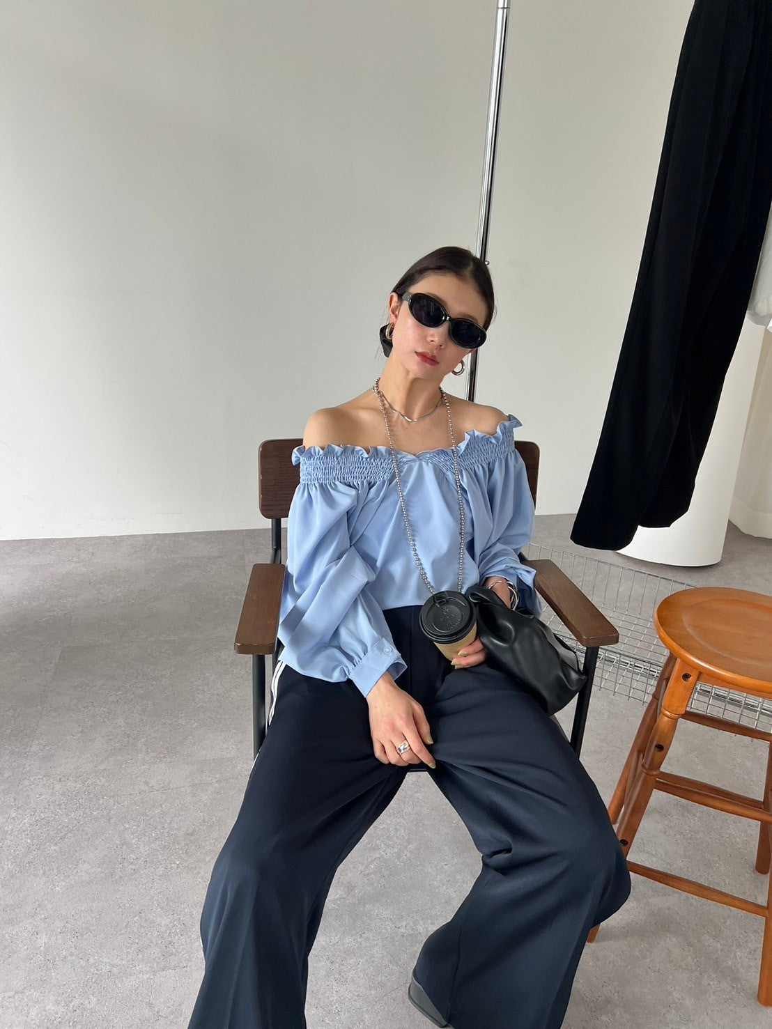 ・シャーリングディティールがおしゃれなオフショルブラウス