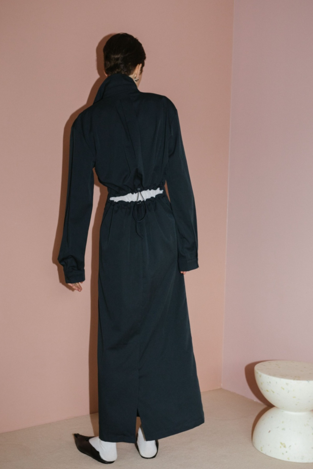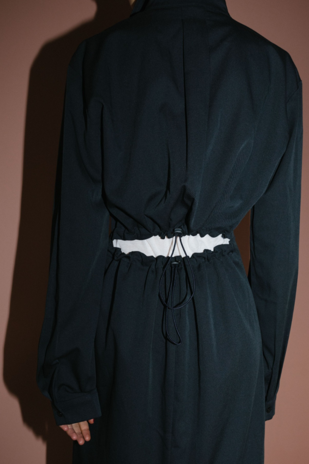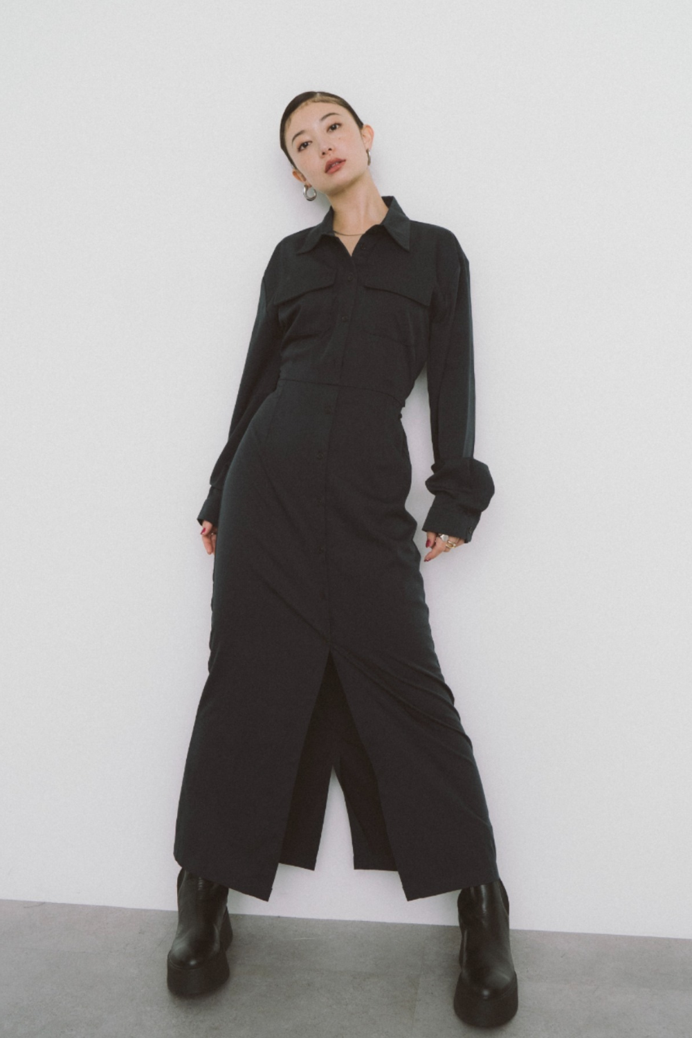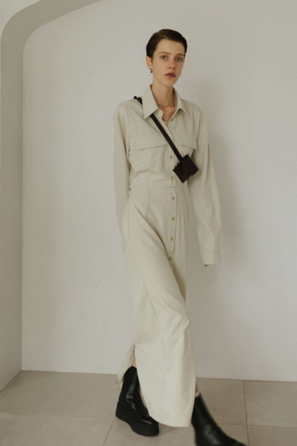 ・シンプルなシャツディティールのデザインに、オープンバックのデザインを施し、バックスタイルがアクセントのロングワンピース