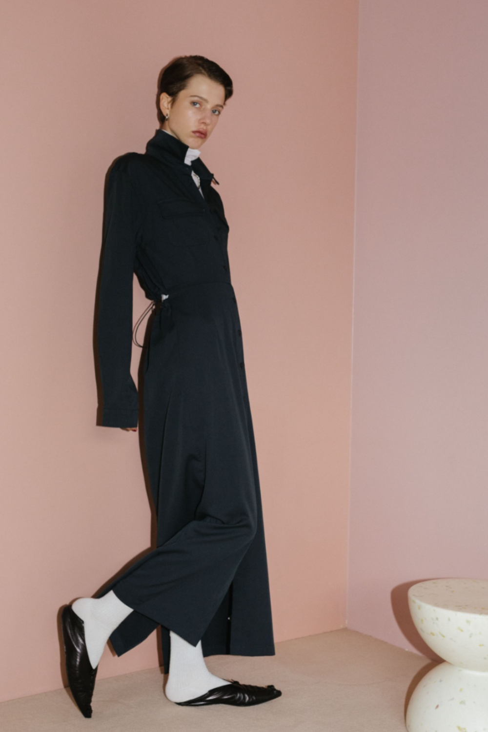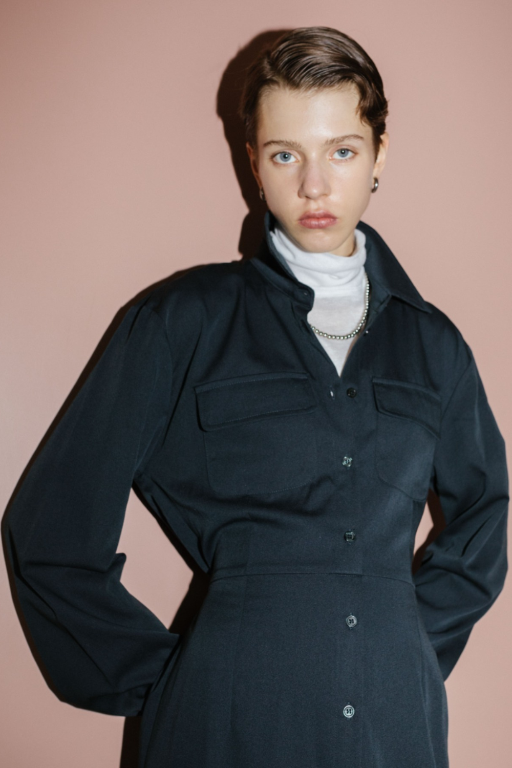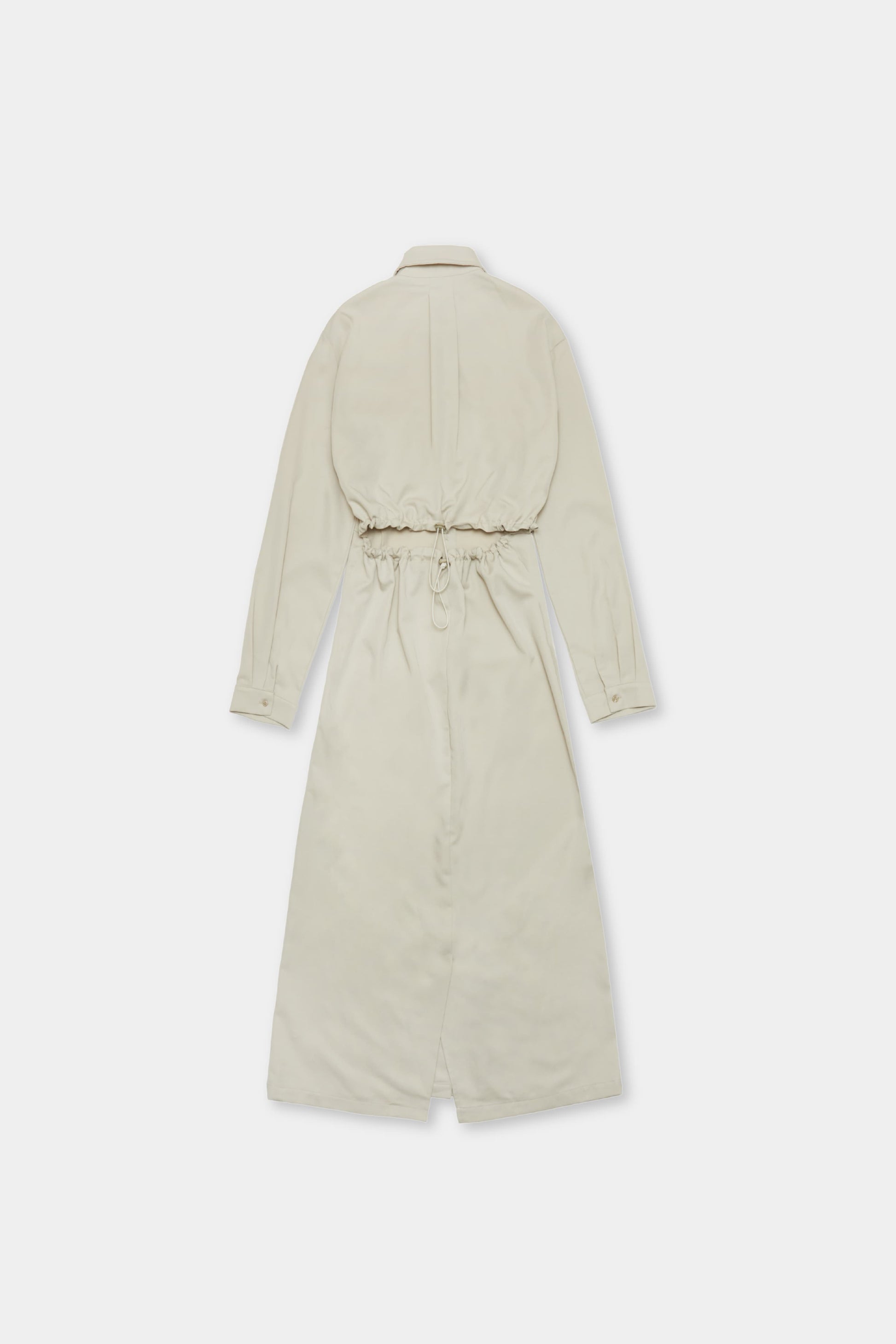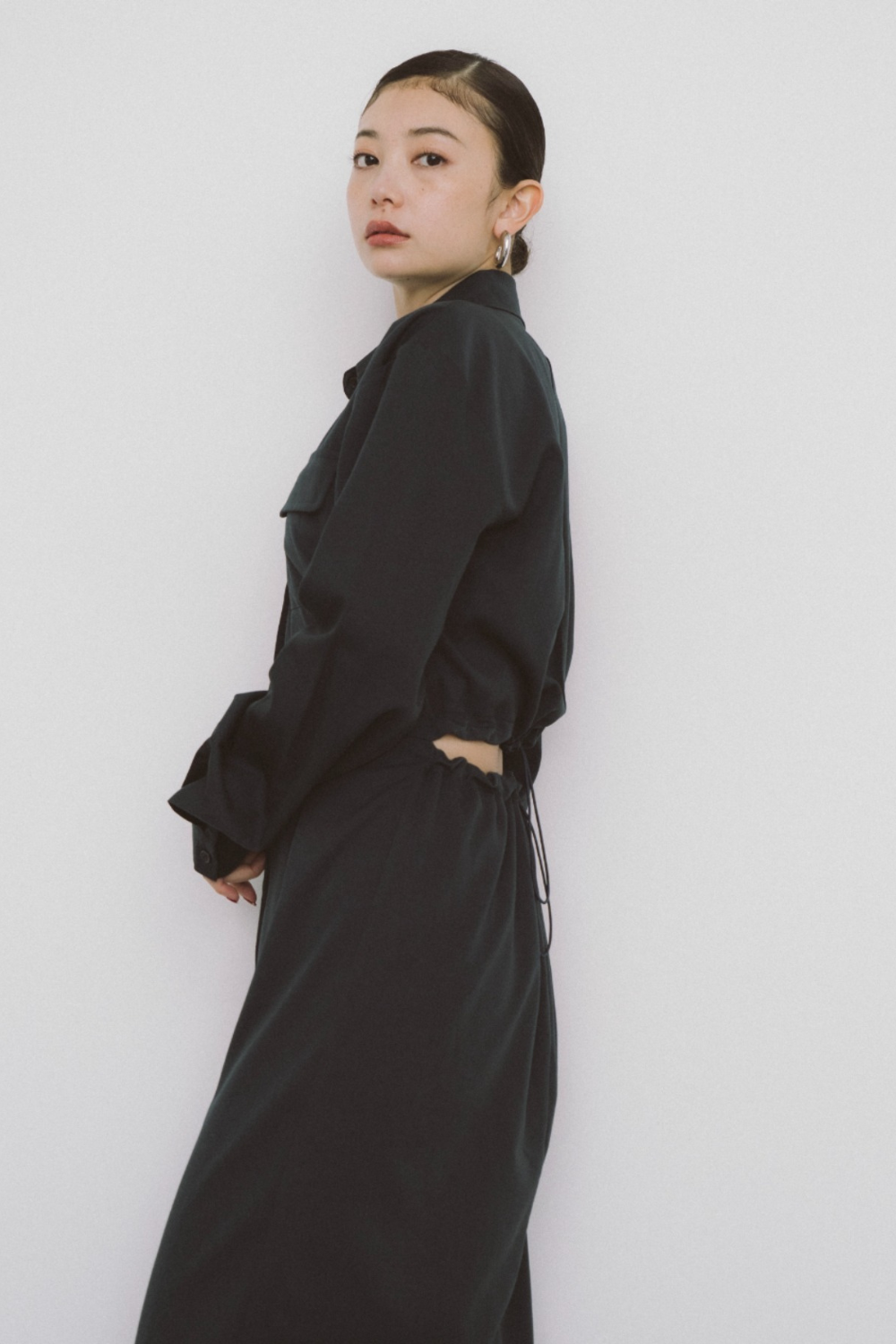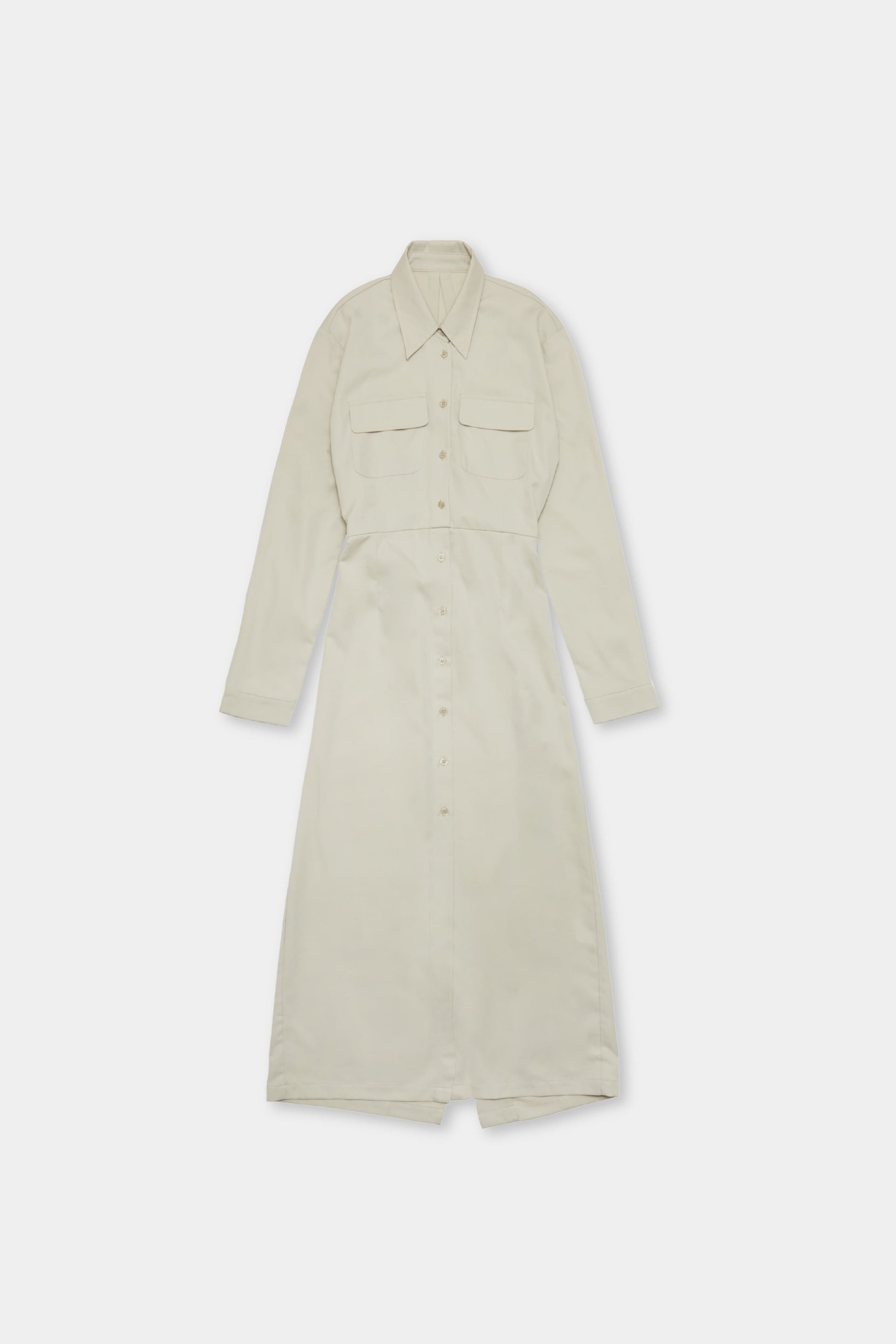 ・シンプルなシャツディティールのデザインに、オープンバックのデザインを施し、バックスタイルがアクセントのロングワンピース