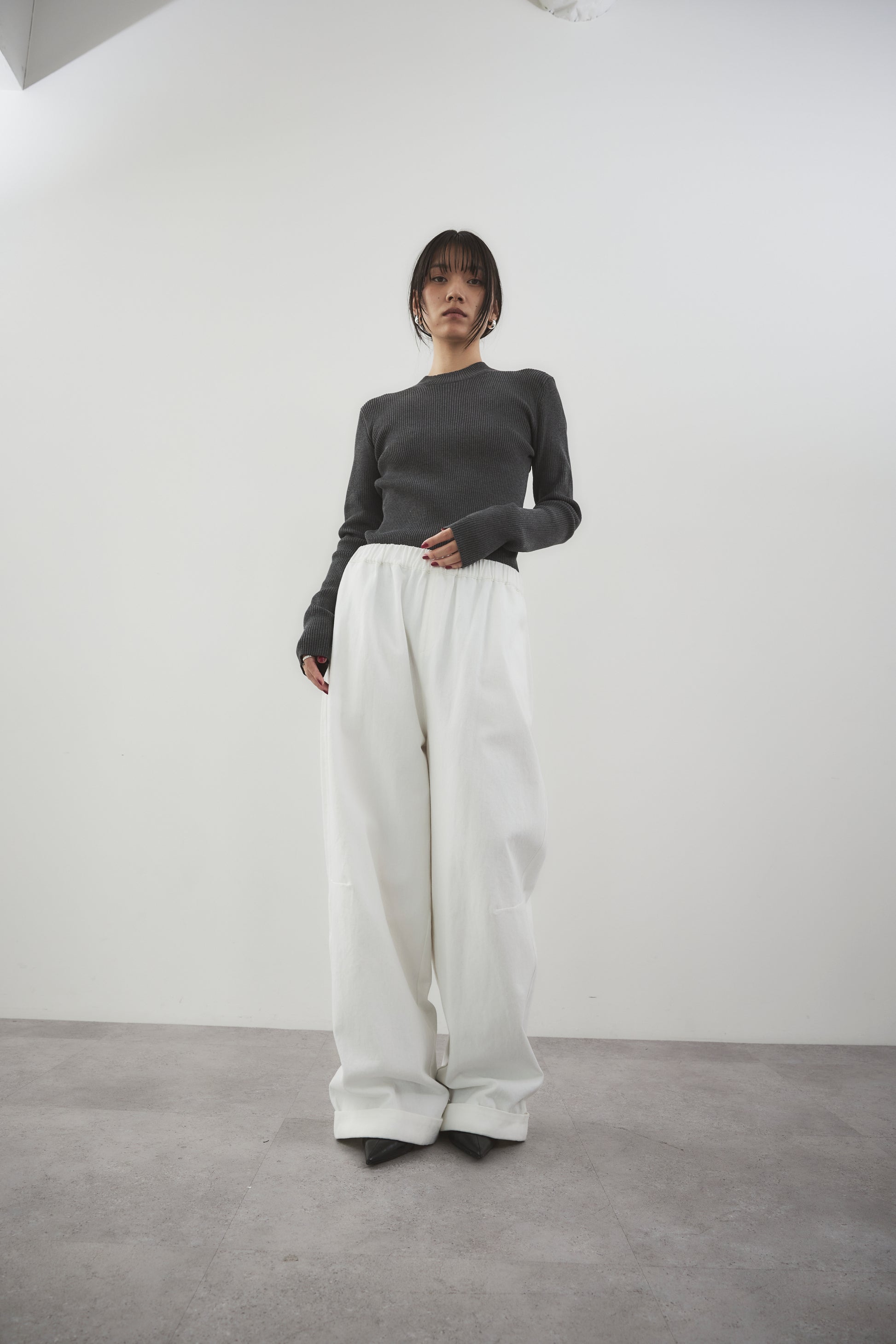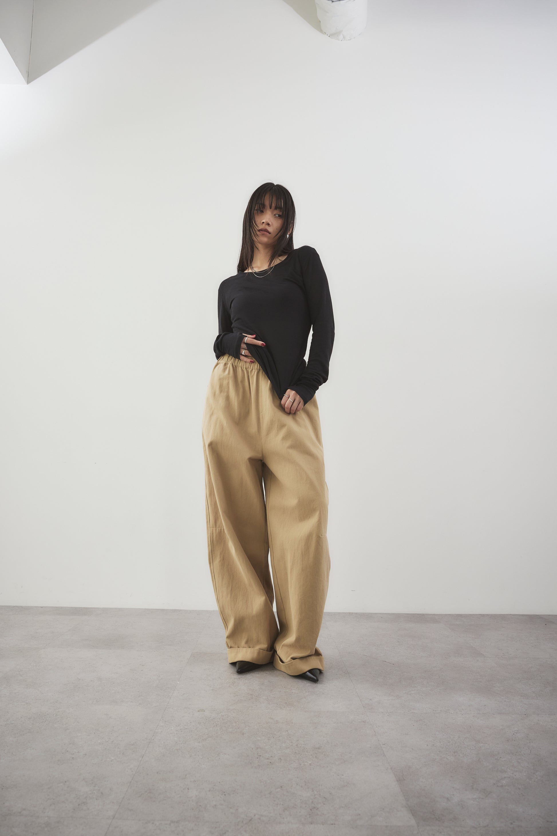 ナチュラルな風合いのコットン素材を使用した、ロールアップ仕様のカーブパンツ