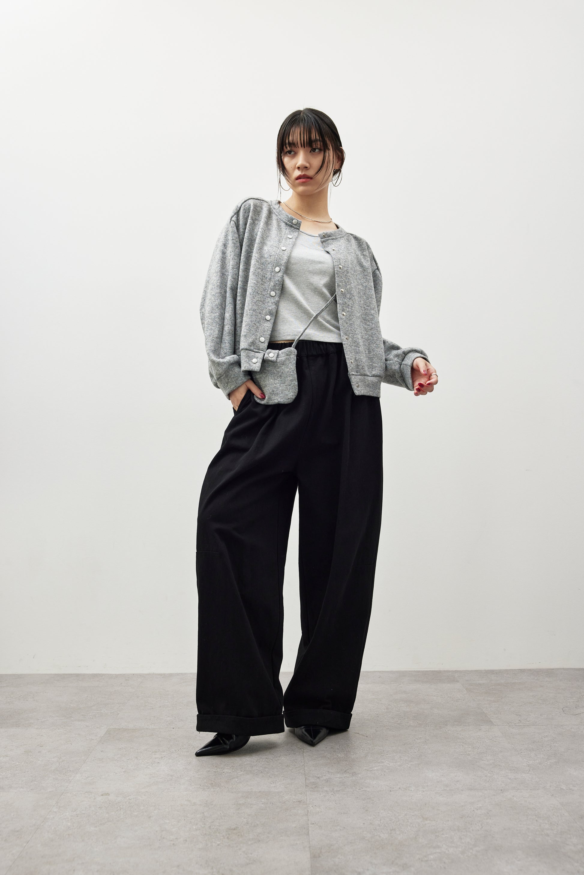 ワイドシルエットながら、ややテーパード気味のラインで野暮ったくならず、カジュアルの中にもモード感漂う一本です
