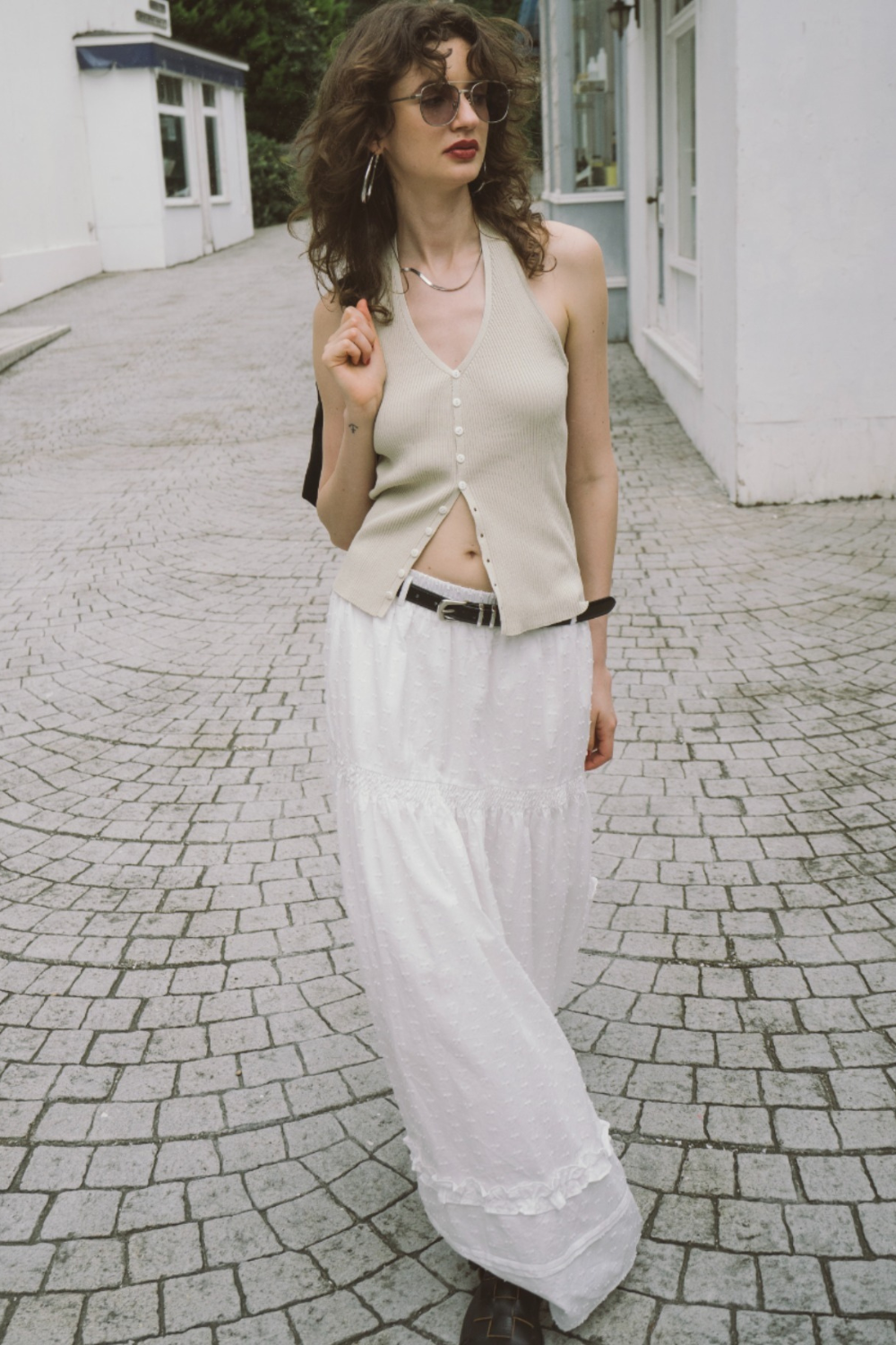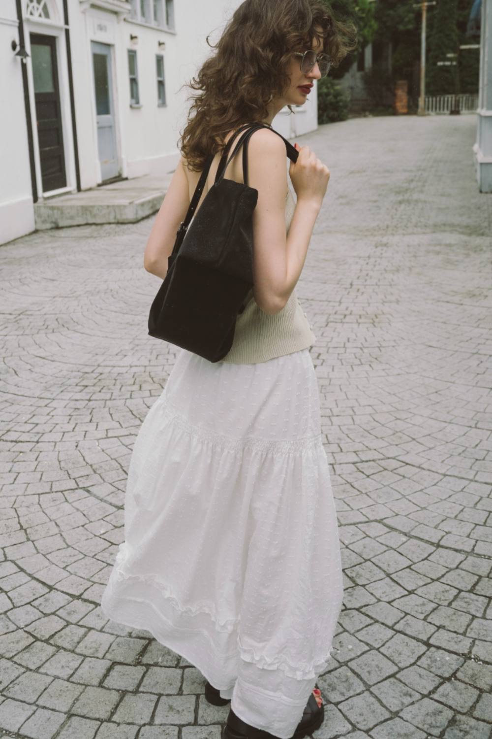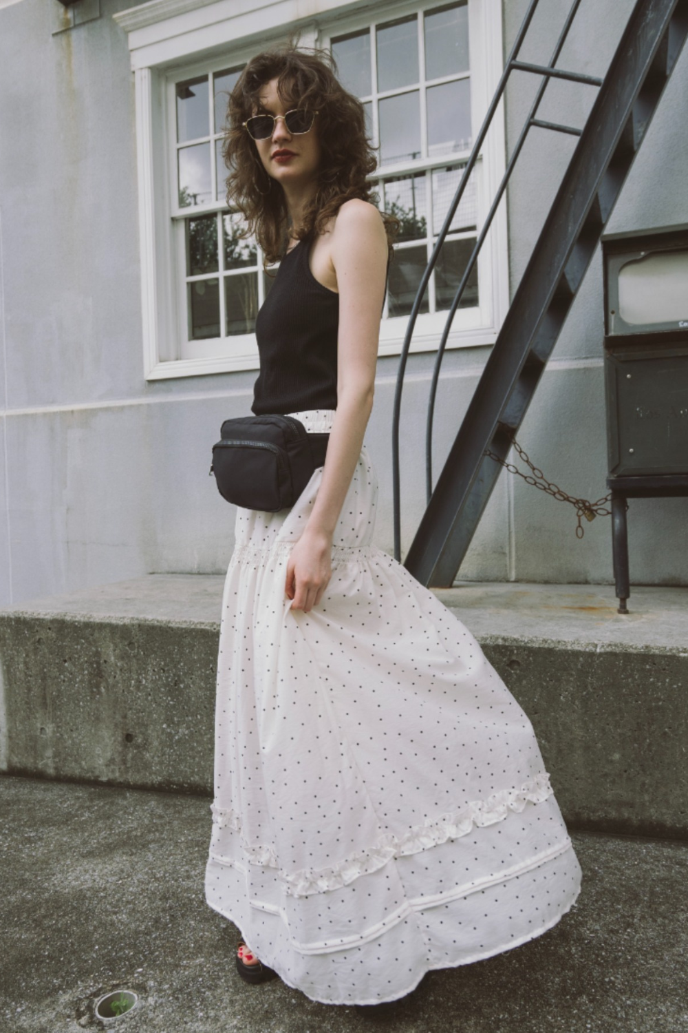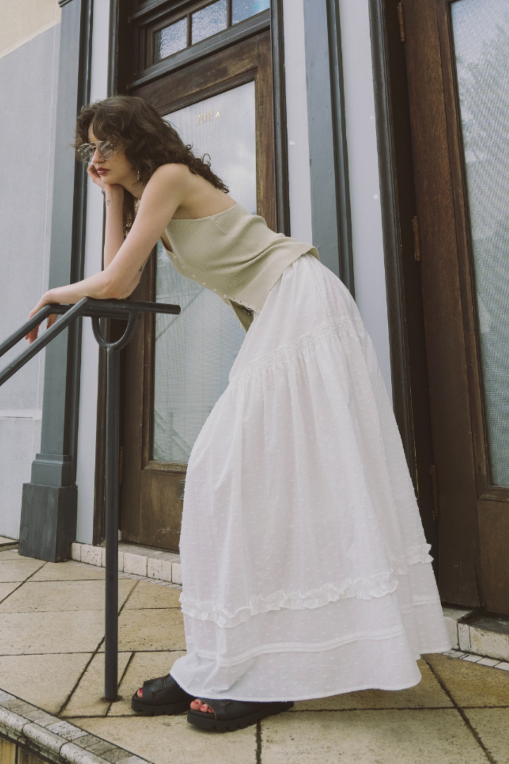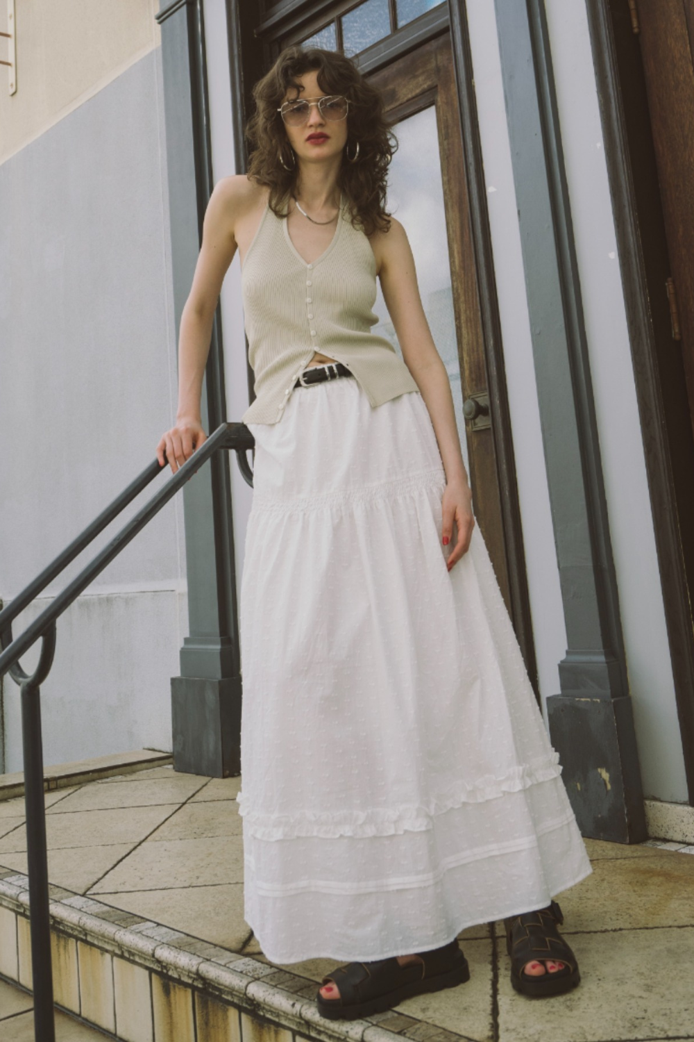 3段ティアードのたっぷりとしたボリュームで存在感がありつつ、動くたびに軽やかに揺れる華やかな1枚です。