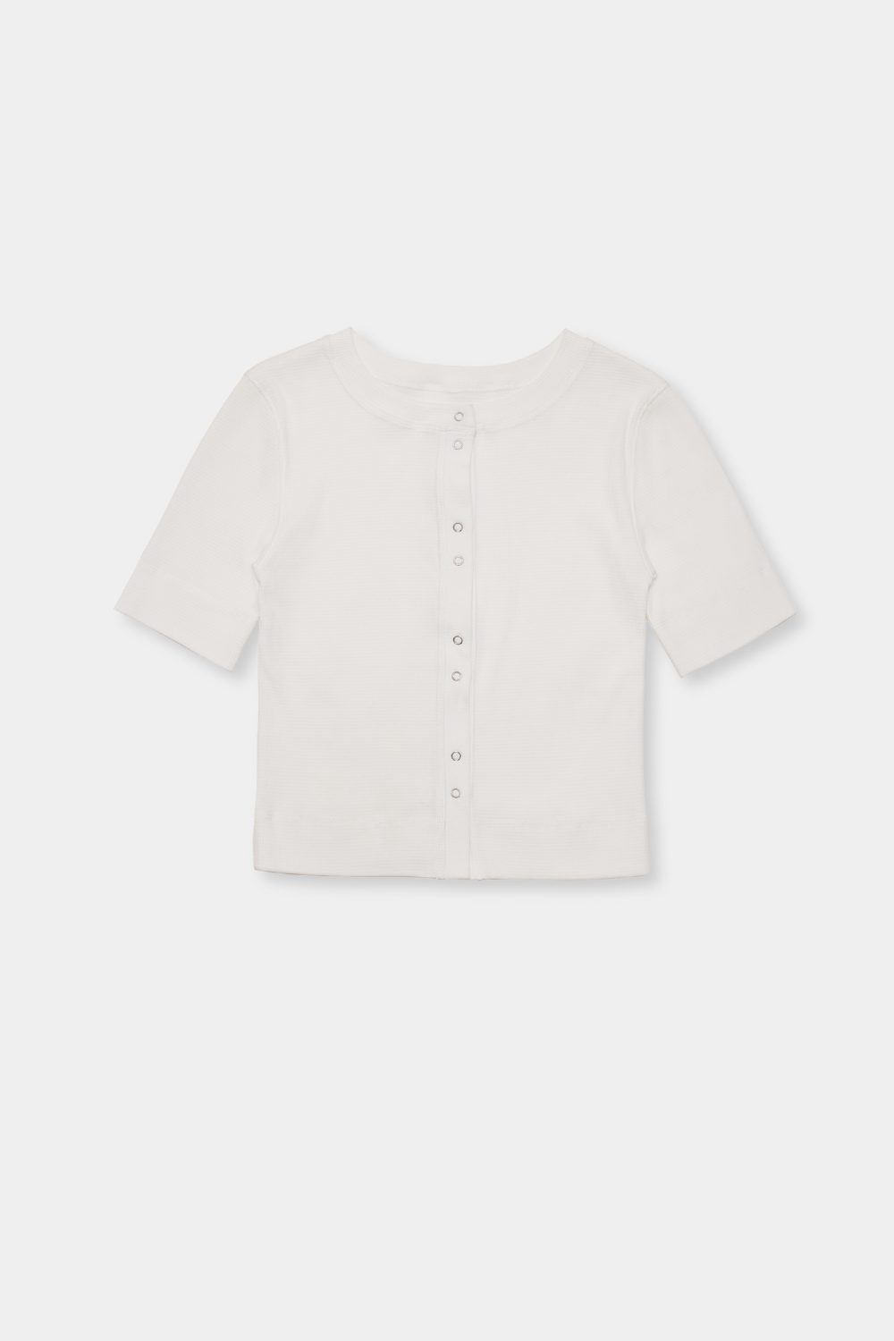 コンパクトなサイジングと五分袖がポイントのスナップカーディガン。