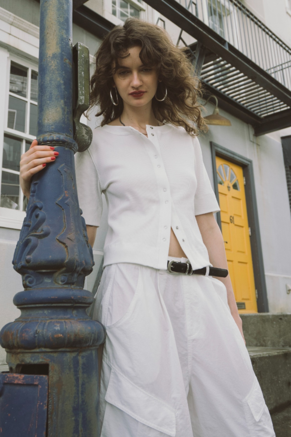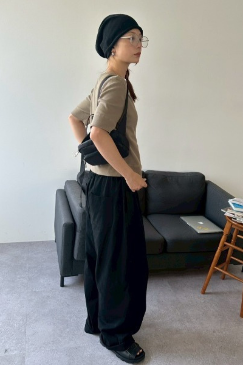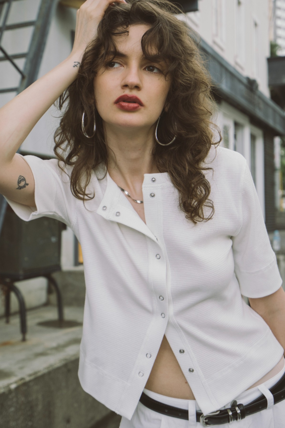 カジュアルな印象のサーマル素材を、モダンに仕上げた1枚。